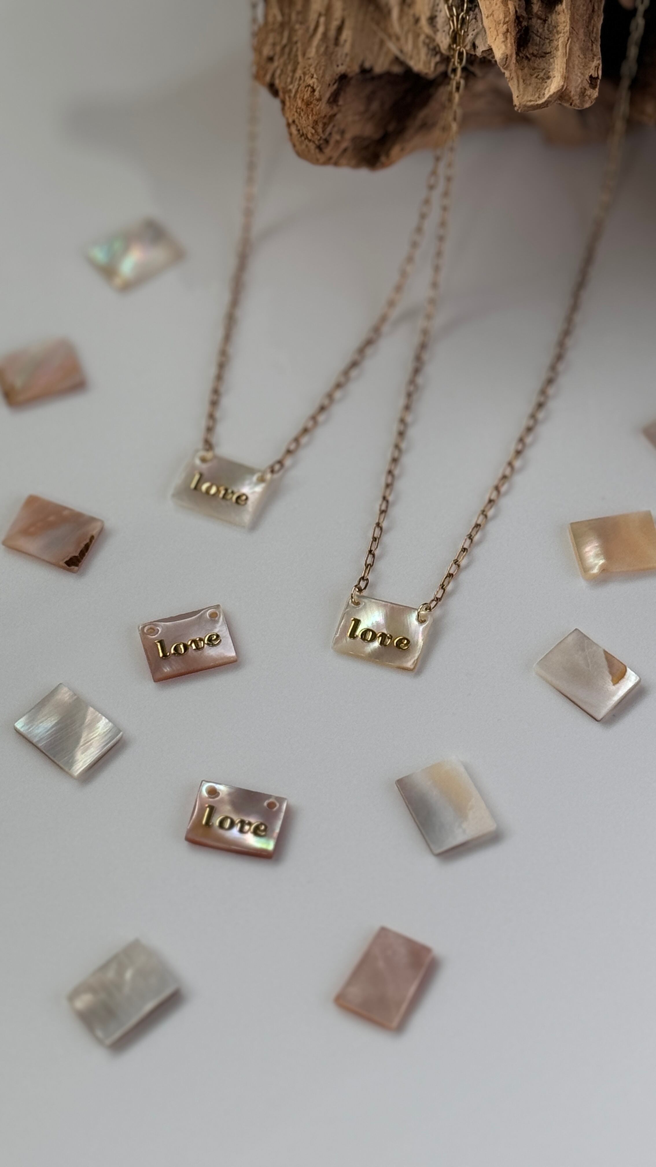シェルプレートに小さく「LOVE」の文字を添えた、