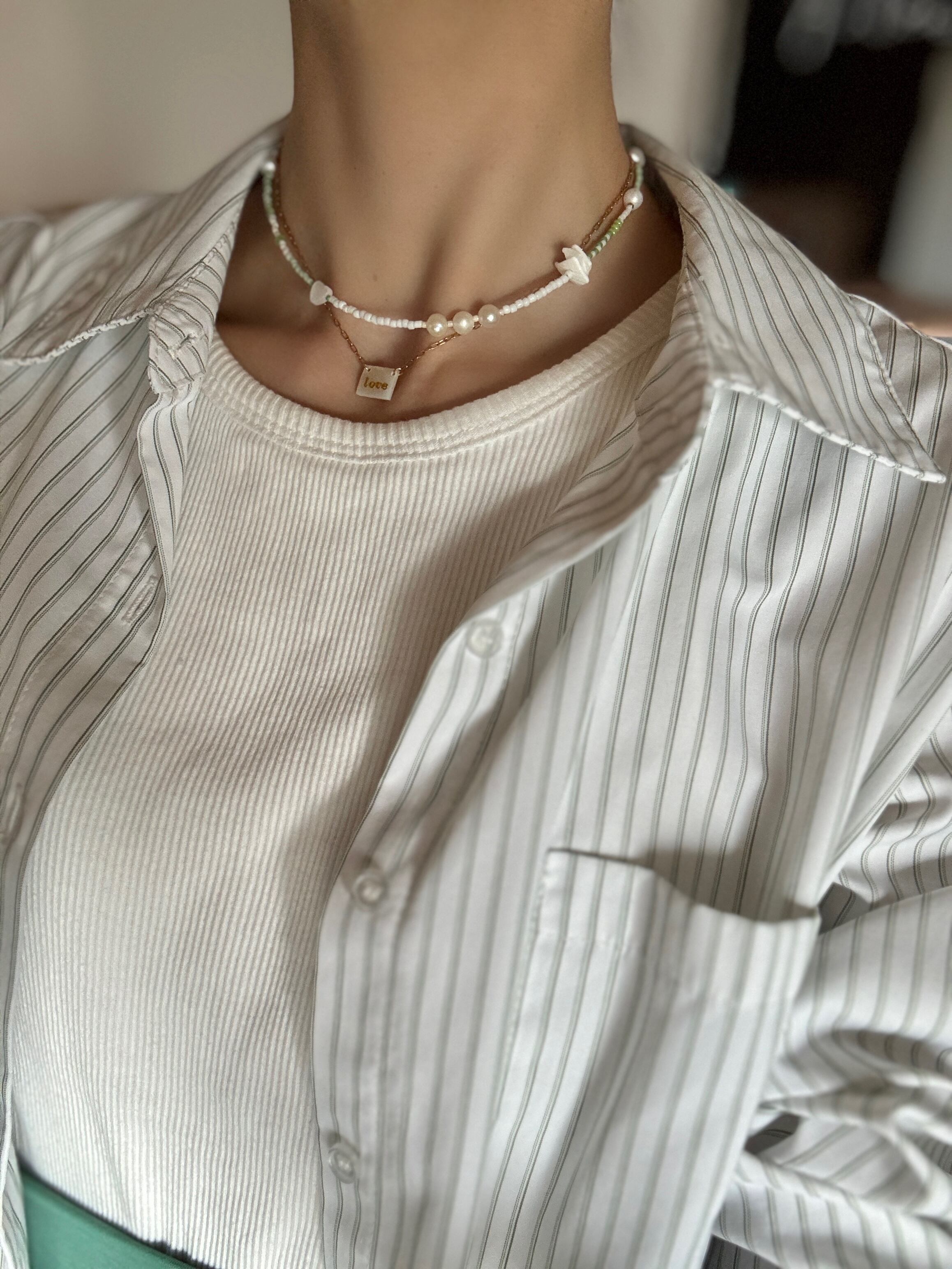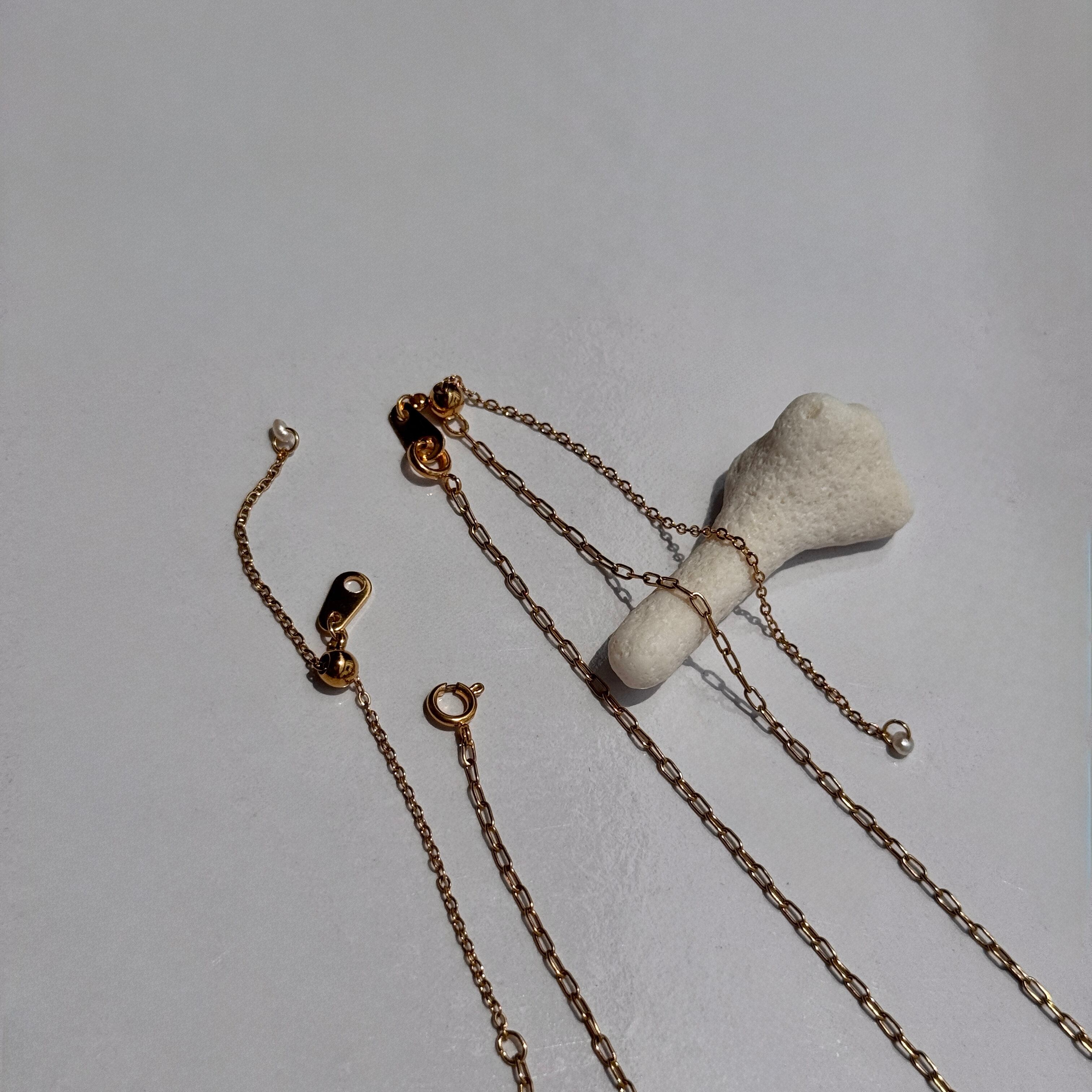 華奢なチェーンやパール・ビーズとのレイヤードに自然となじみ、日々の装いにニュアンスを加えてくれます。