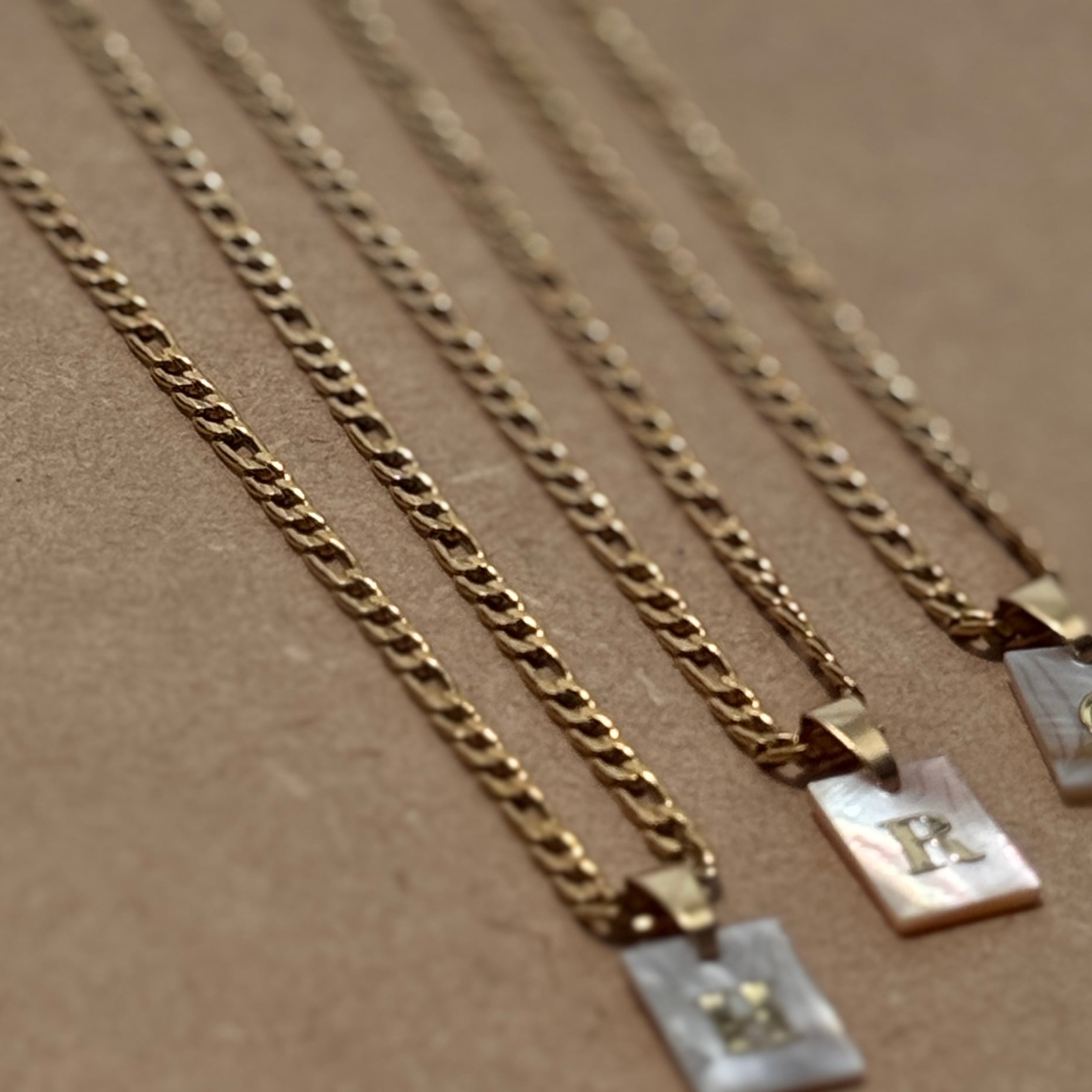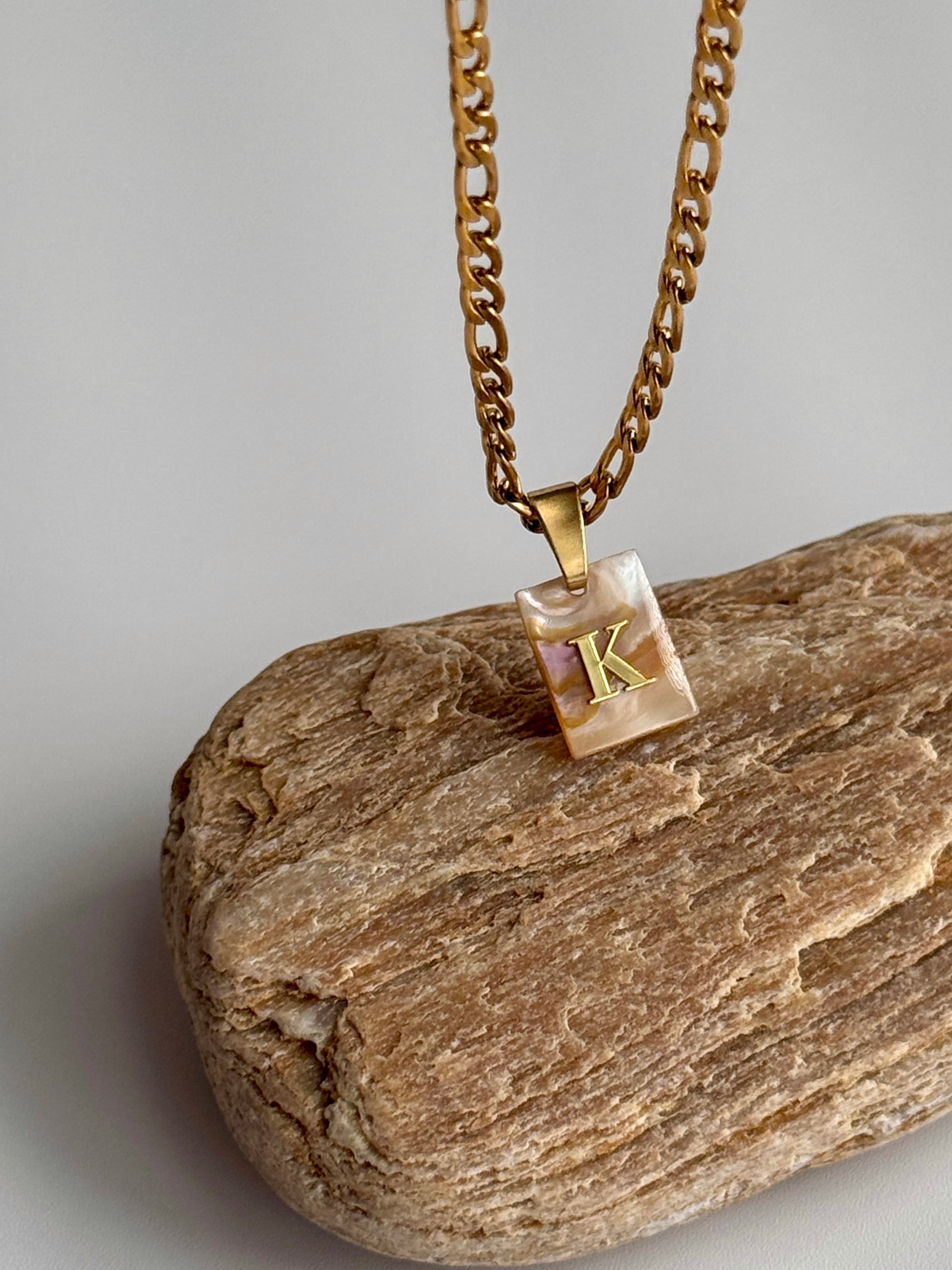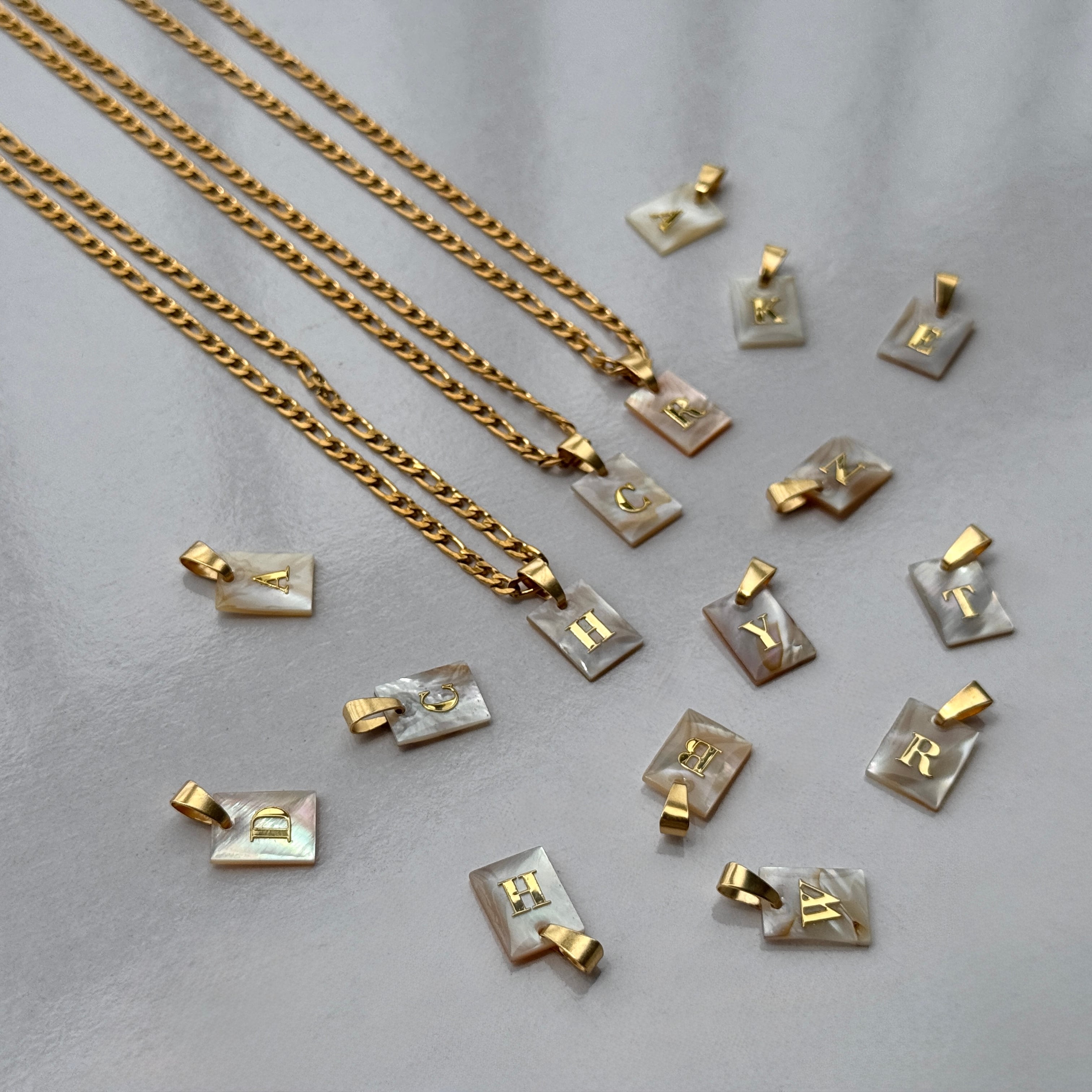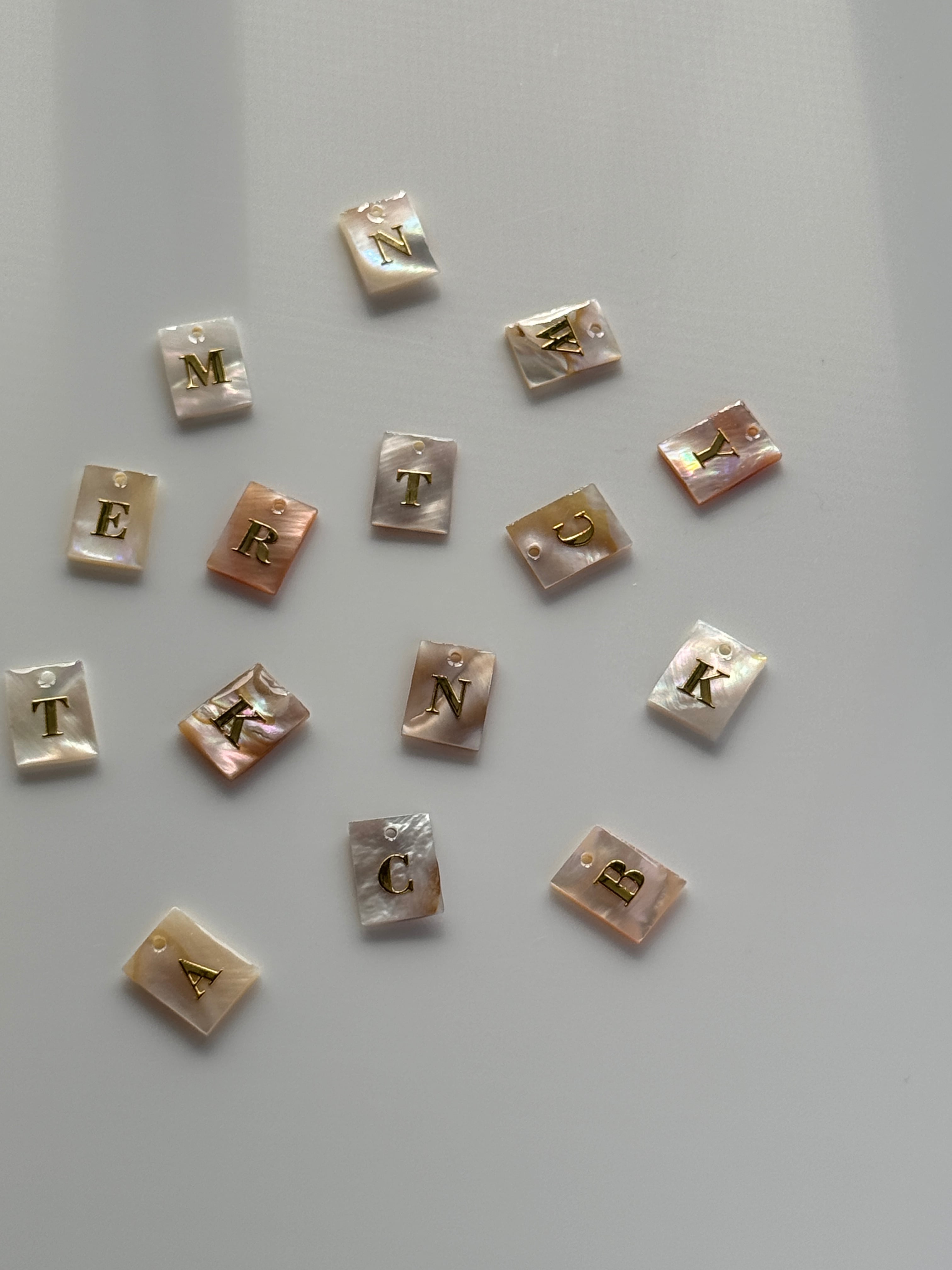 天然シェルに一つずつ丁寧にイニシャルを閉じ込めた