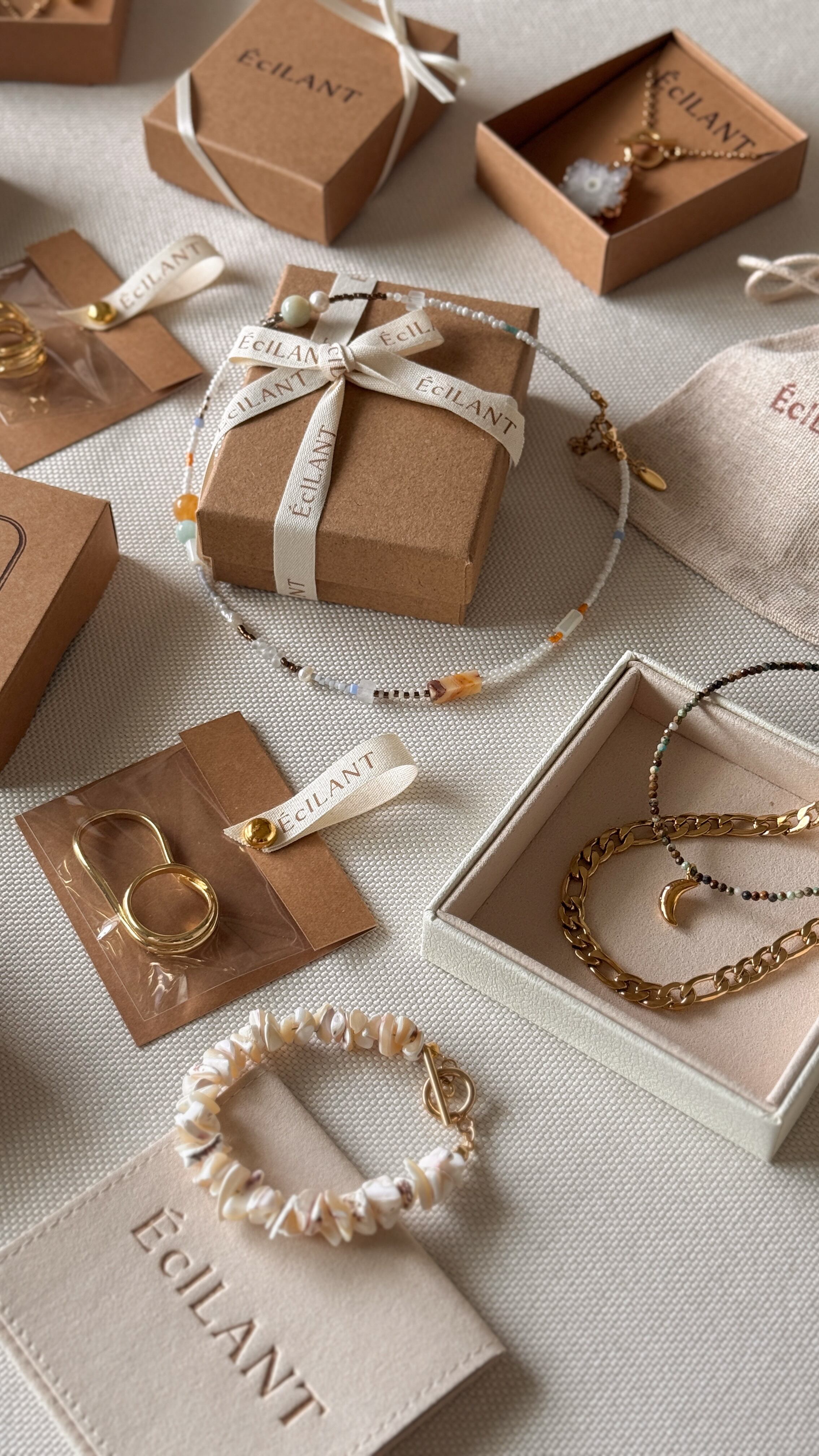 ブラック×ホワイトのコントラストに、さりげない透明感や天然石の柔らかさを織り交ぜ、シャープな中にも女性らしさを感じるデザインに仕上げました。
