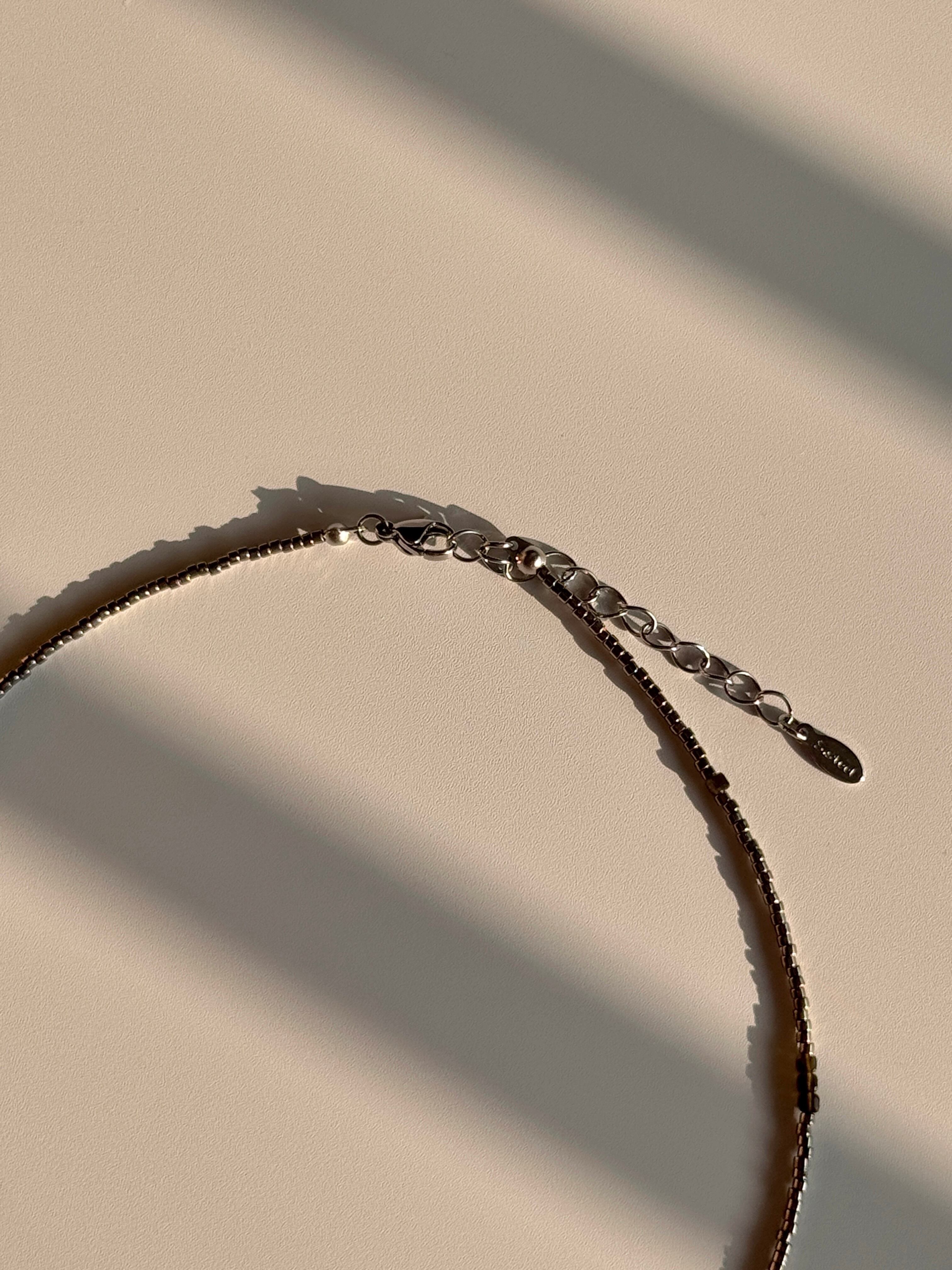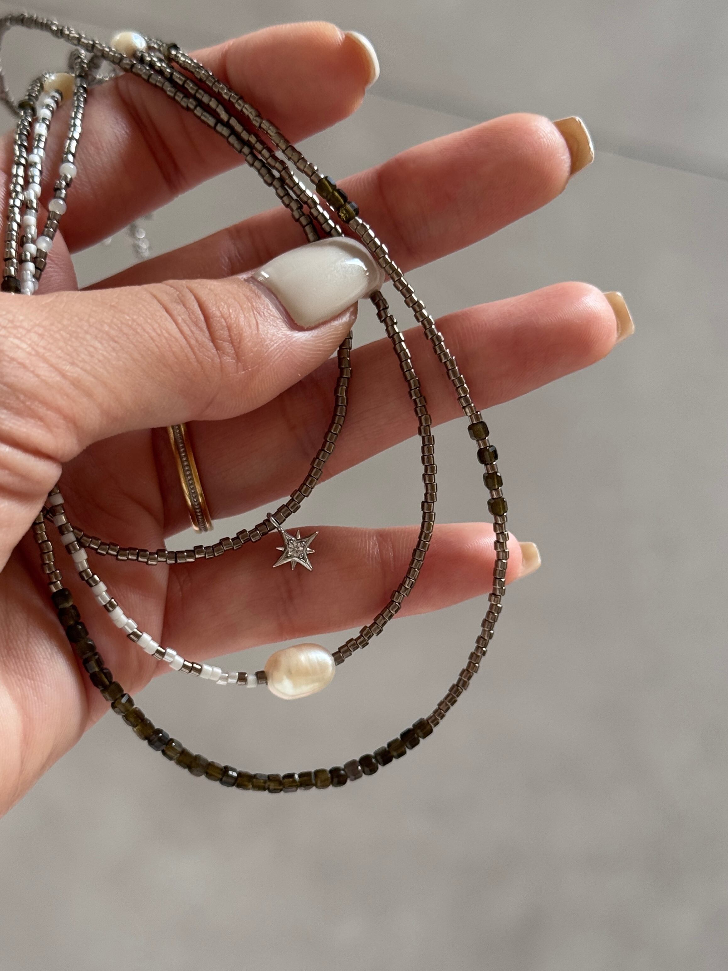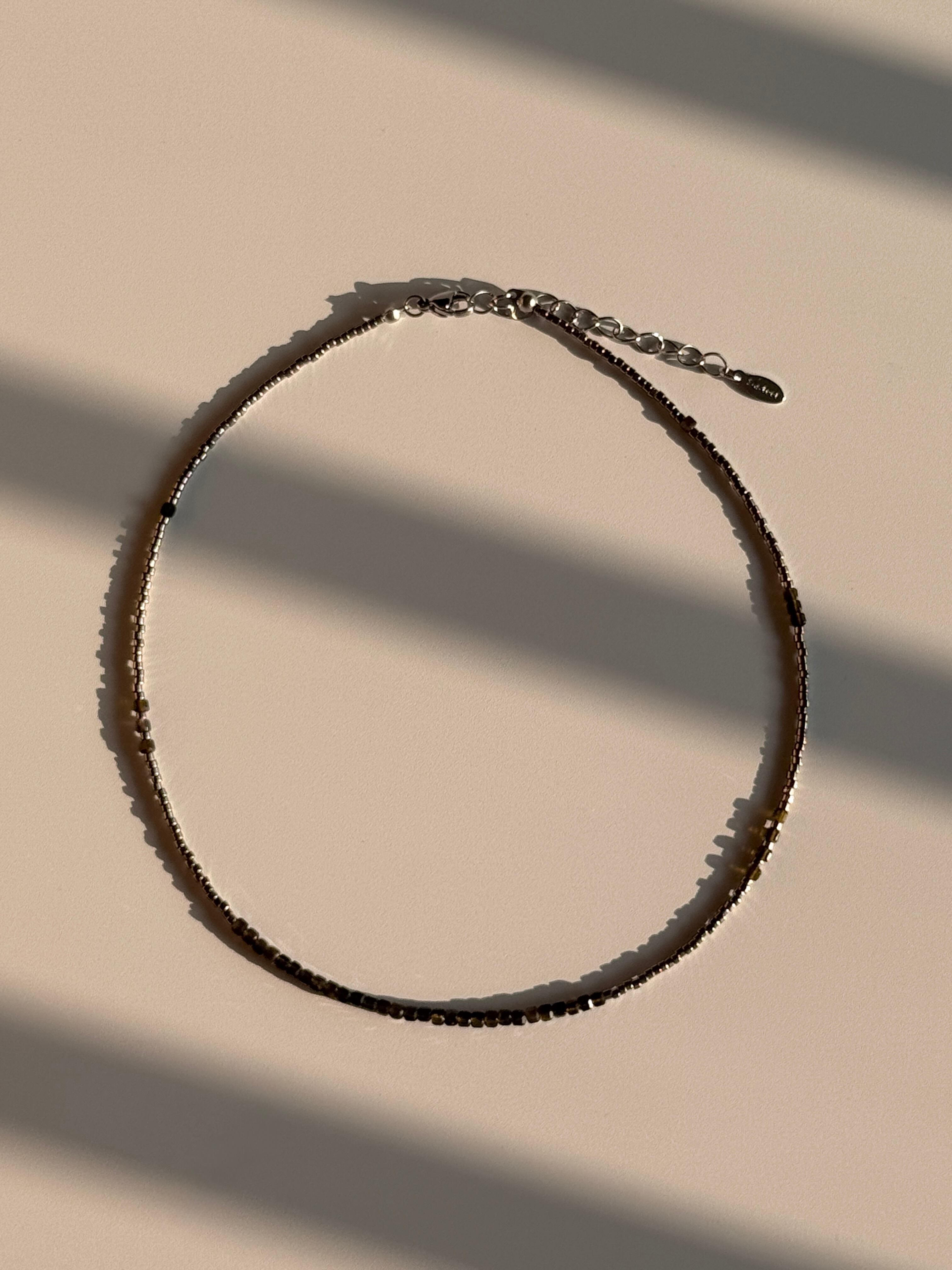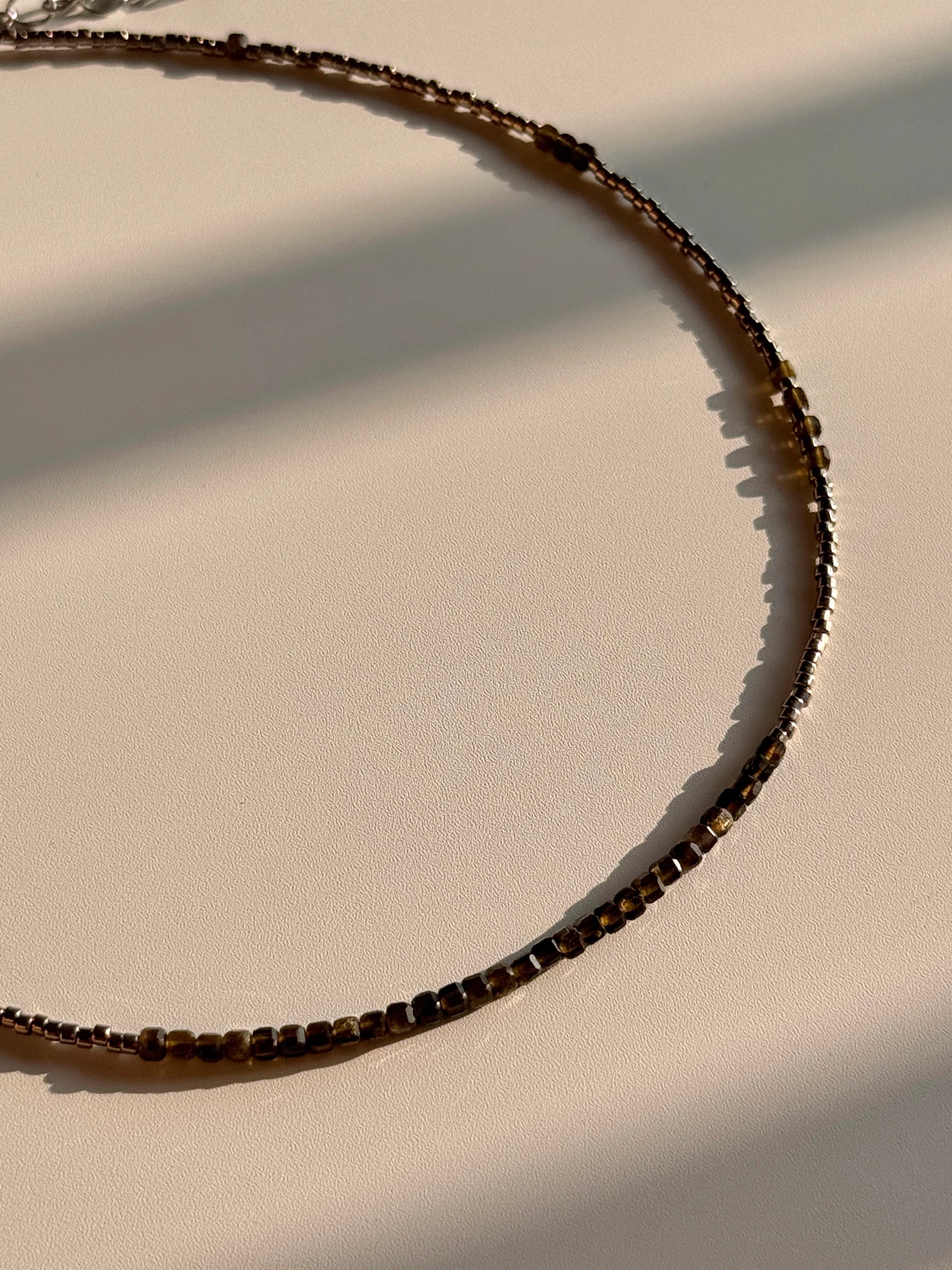 一見ブラウンのようなシルバーに近い、シックなカラーのビーズと、