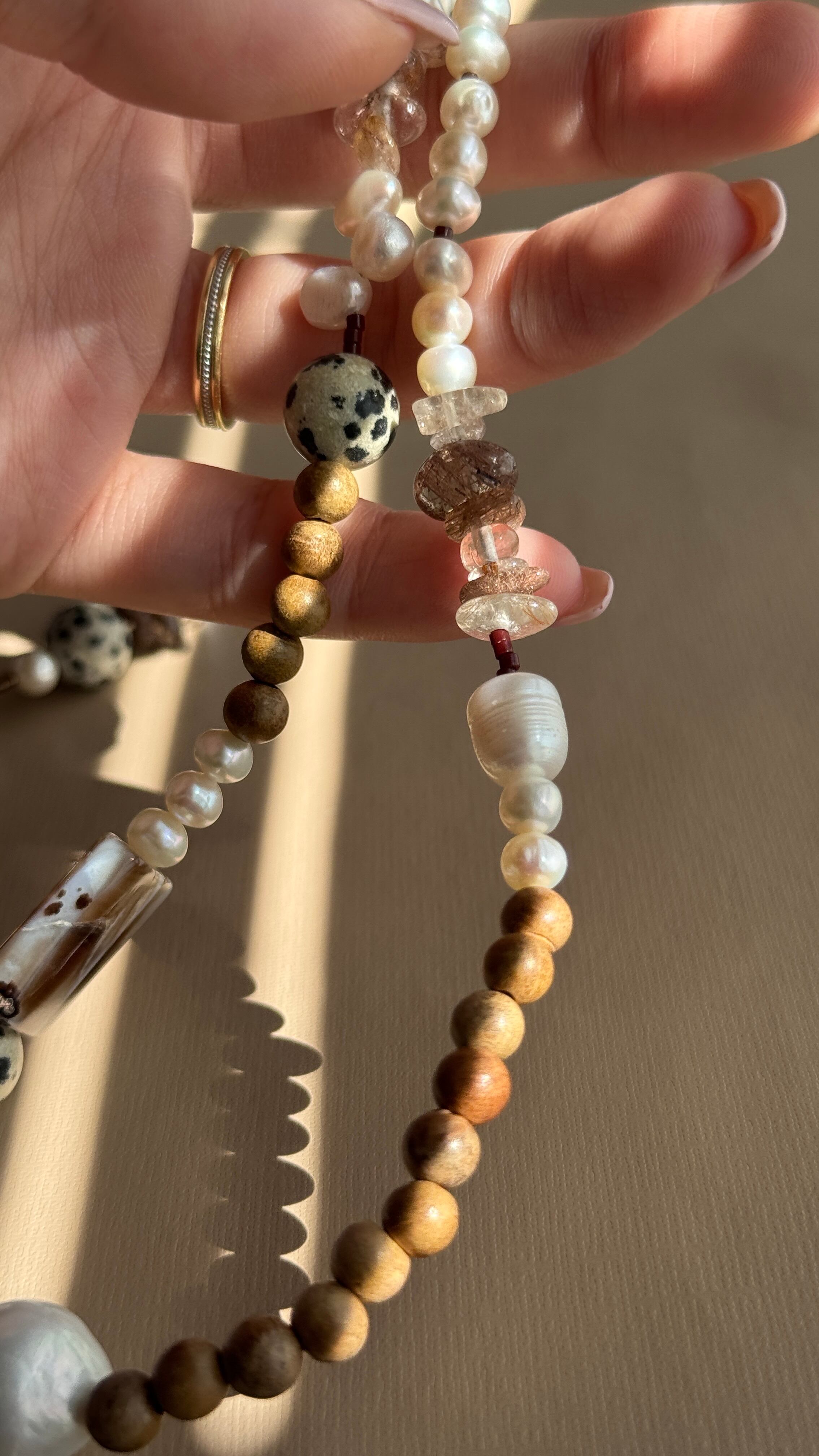 ウッド、ダルメシアンジャスパー、ルチルクォーツなど、