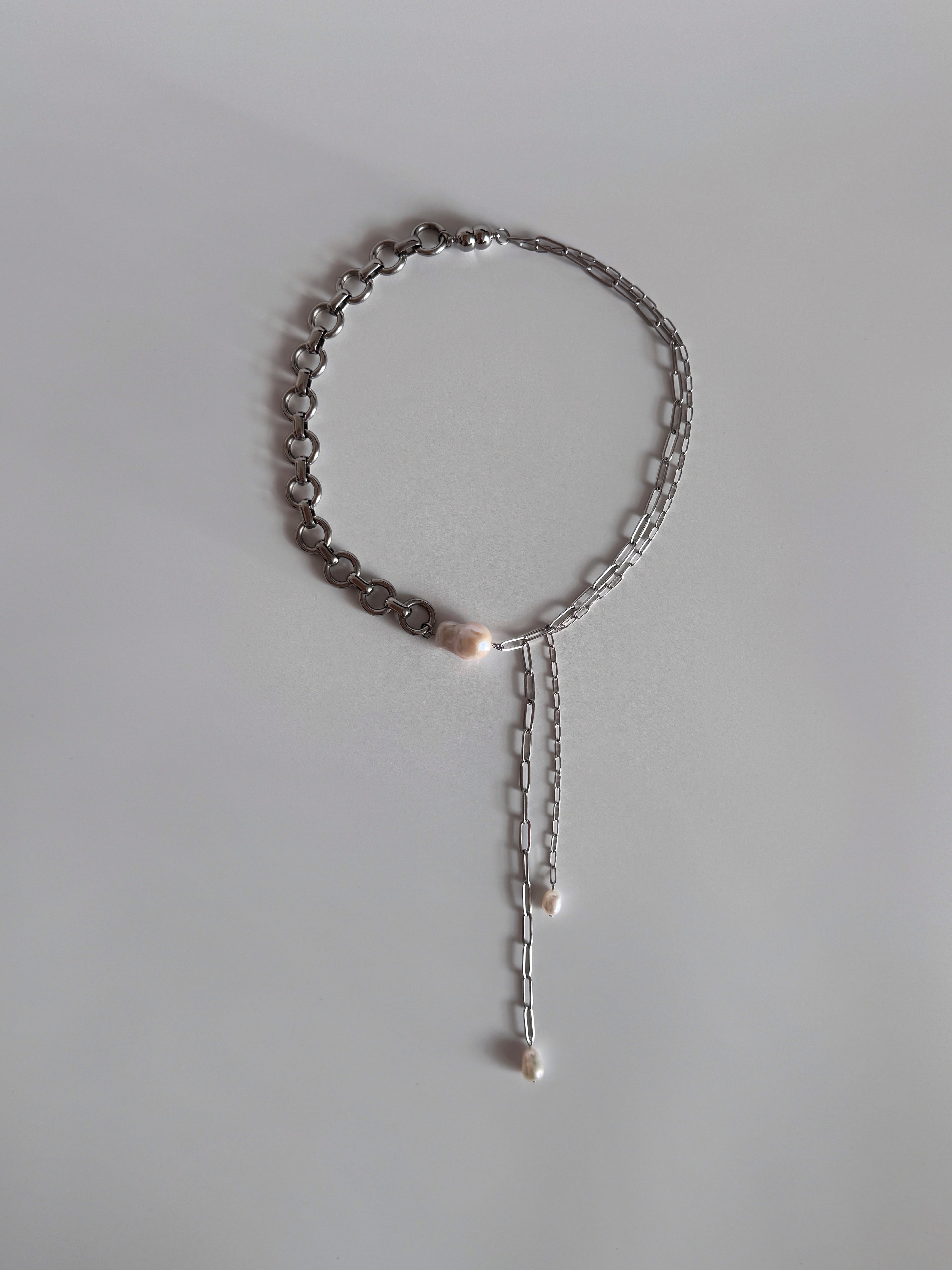 Chain × Baroque Pearl | Lariat Necklace[SSN095]