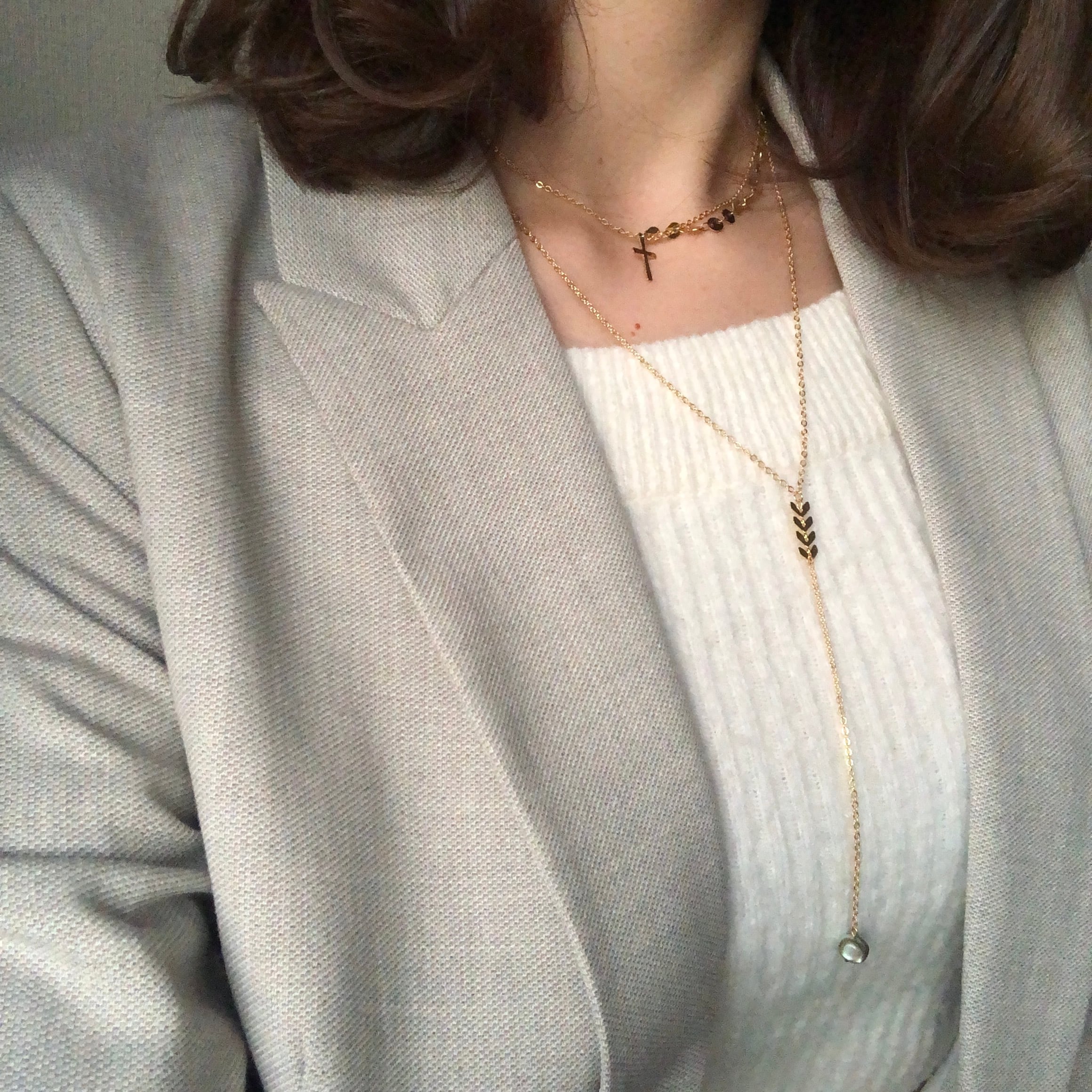 リーフデザインがお洒落なロザリオ風ロングネックレス。