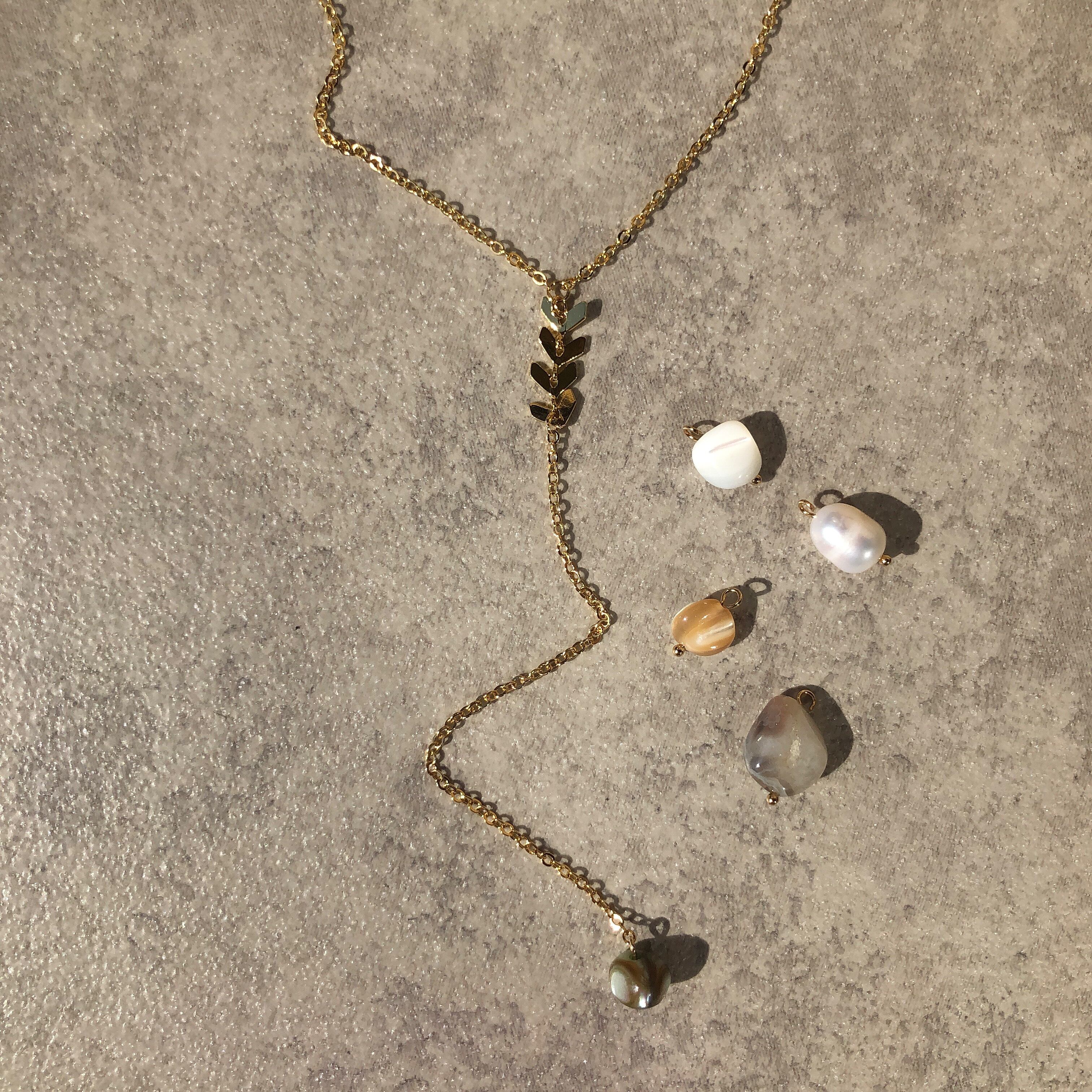 【自分でカスタム】 リーフデザイン ロング ゴールドネックレス