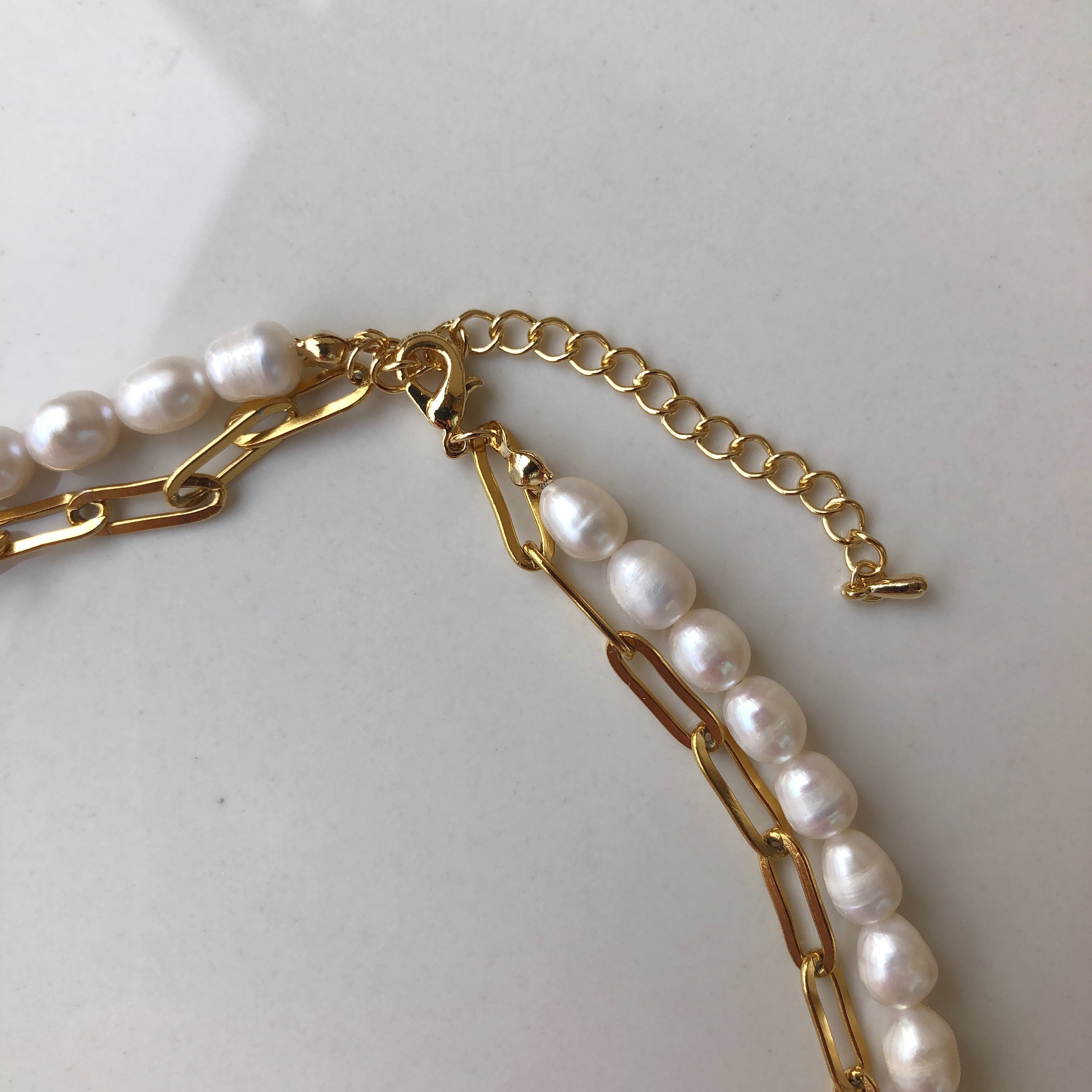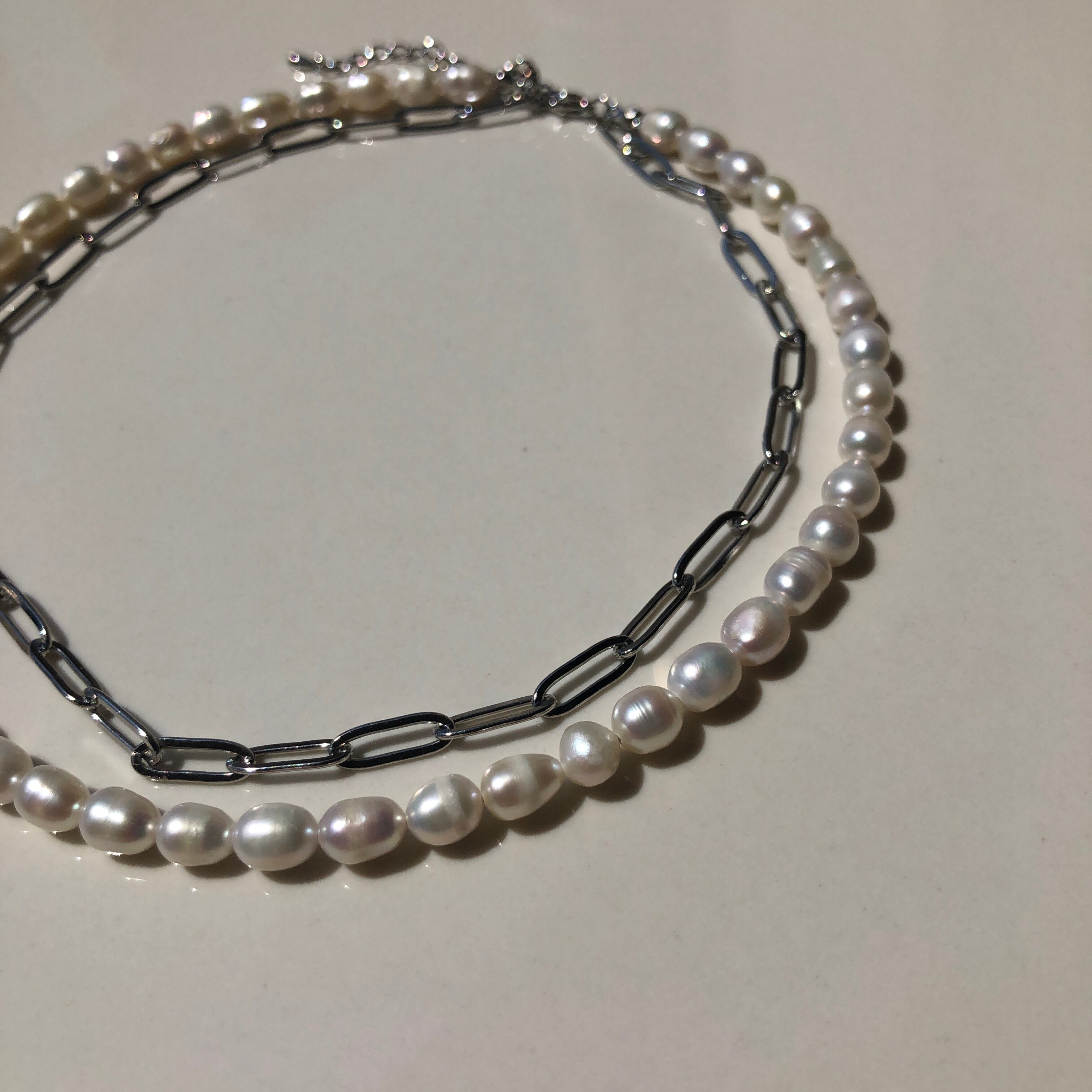 チェーンと淡水パールの2連ネックレス✨