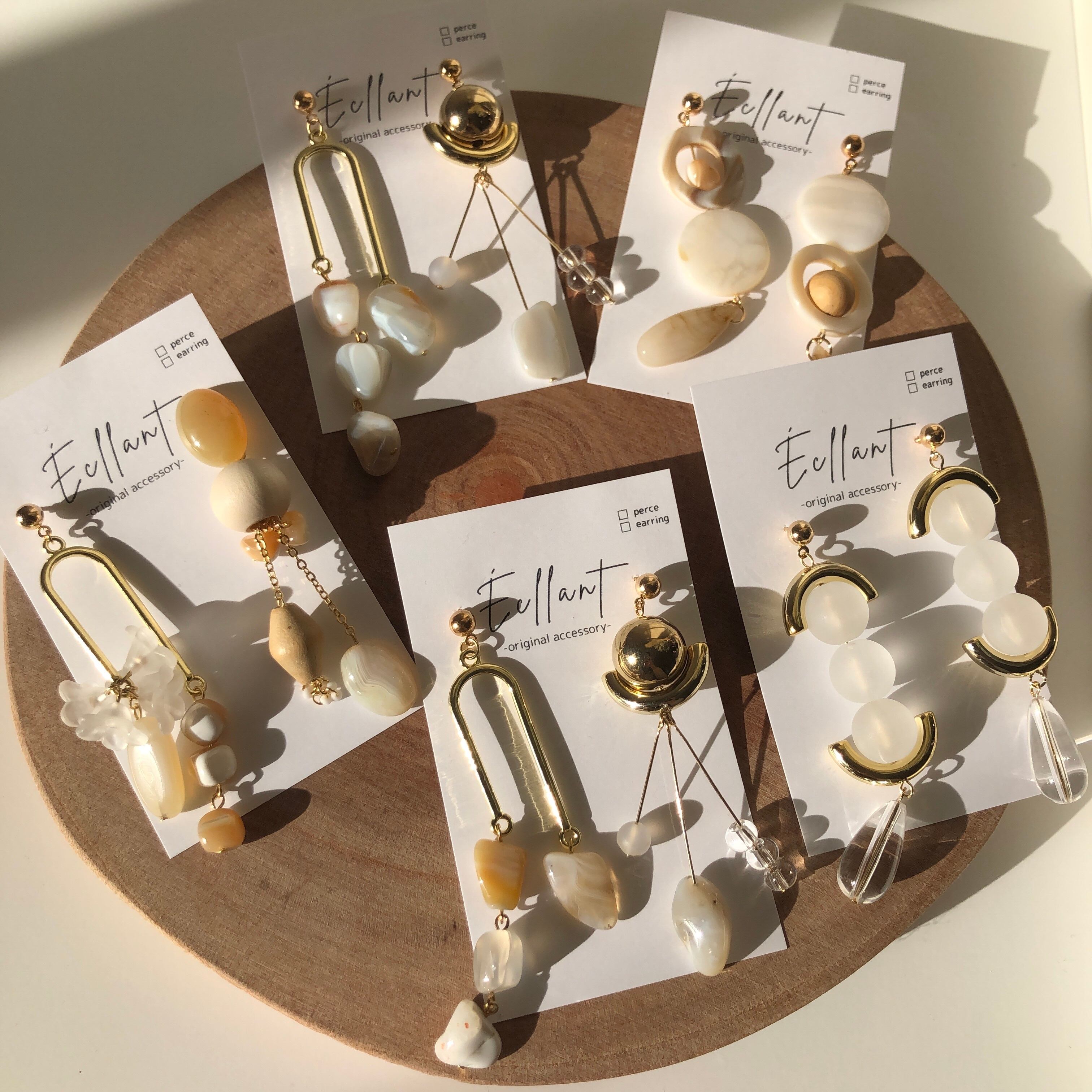 ウッドやイエロー、シェルビーズを使用した