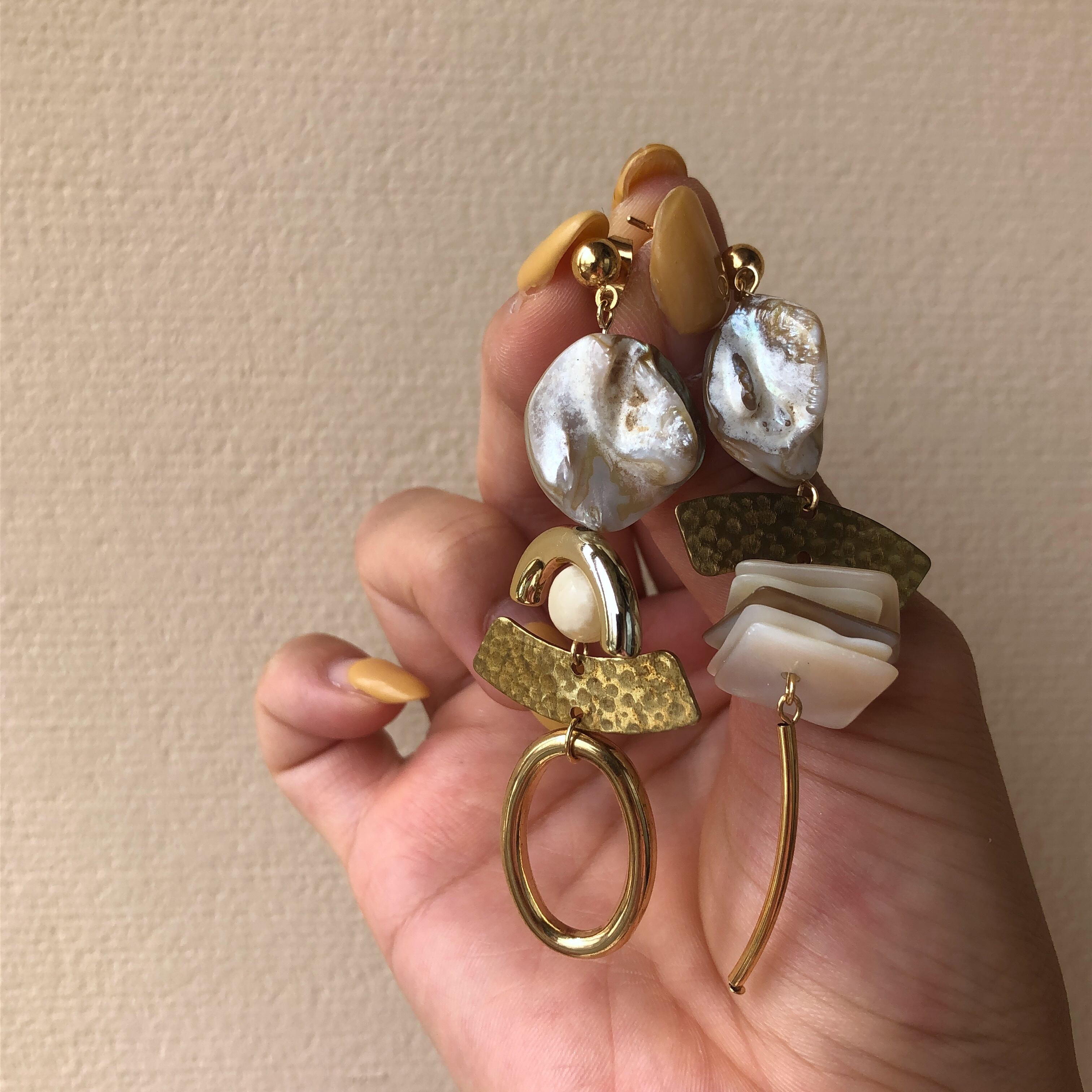 シェル 大振り アシンメトリーピアス / イヤリング / サージカルステンレス
