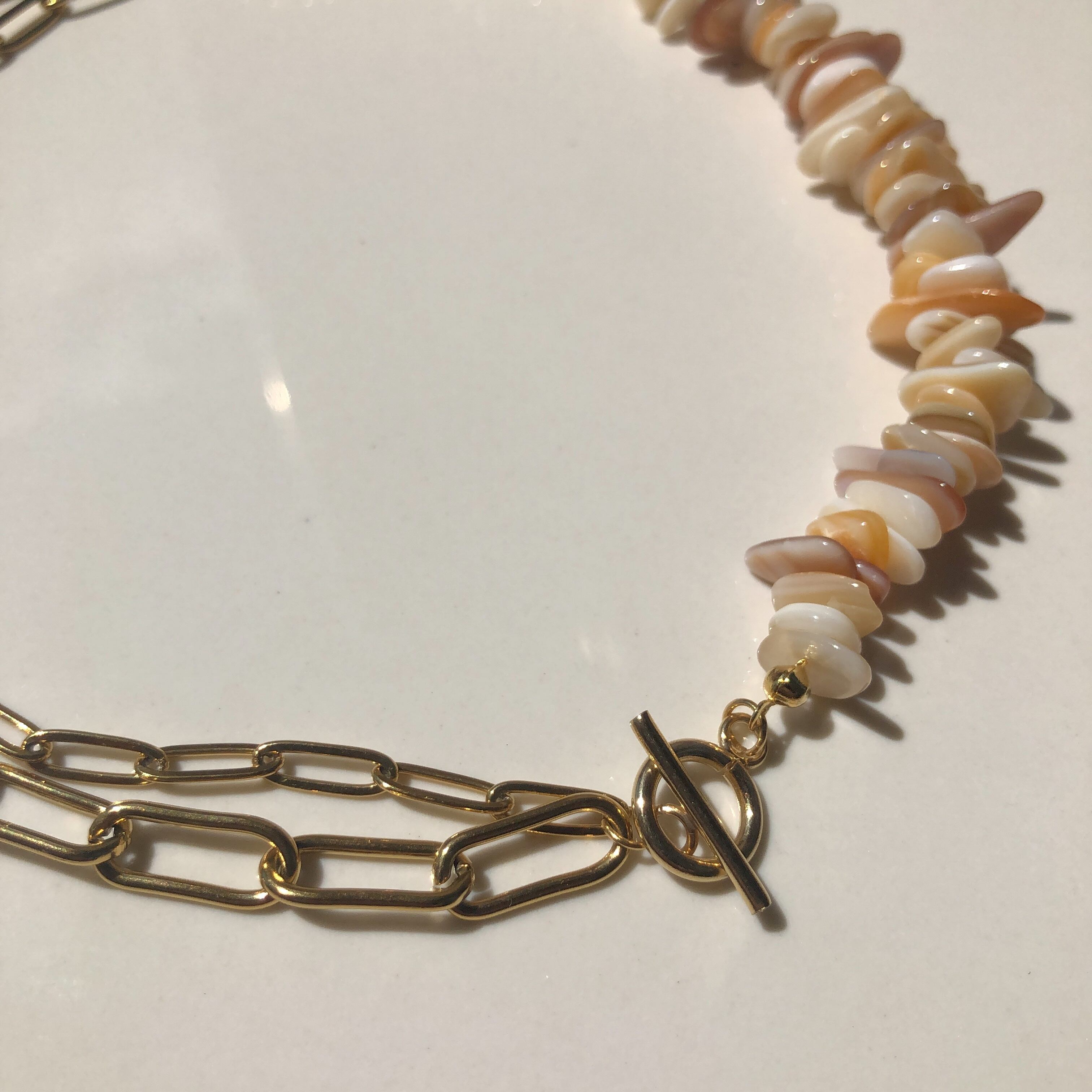 [全2色]シェル × チェーン マンテルネックレス[GSN022]
