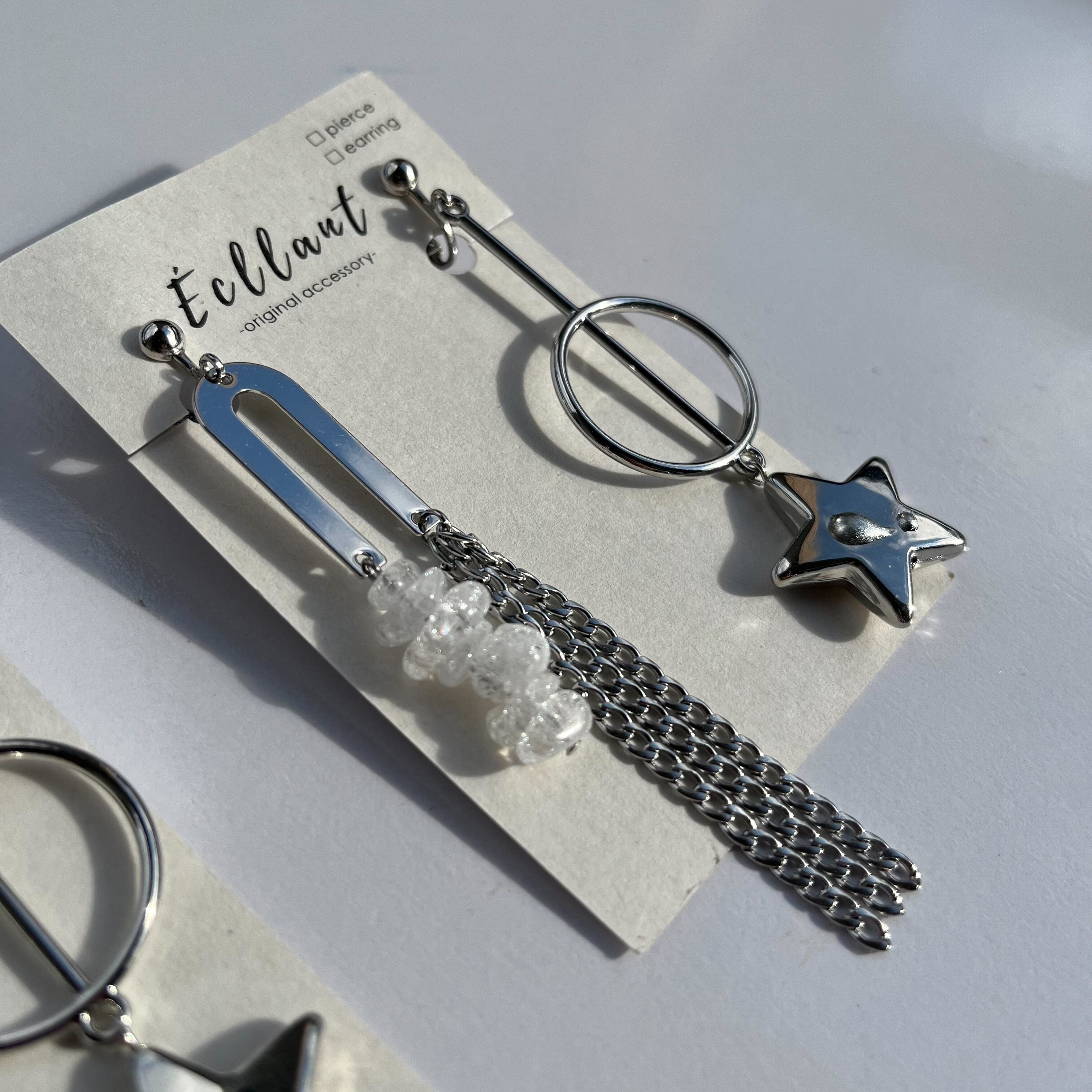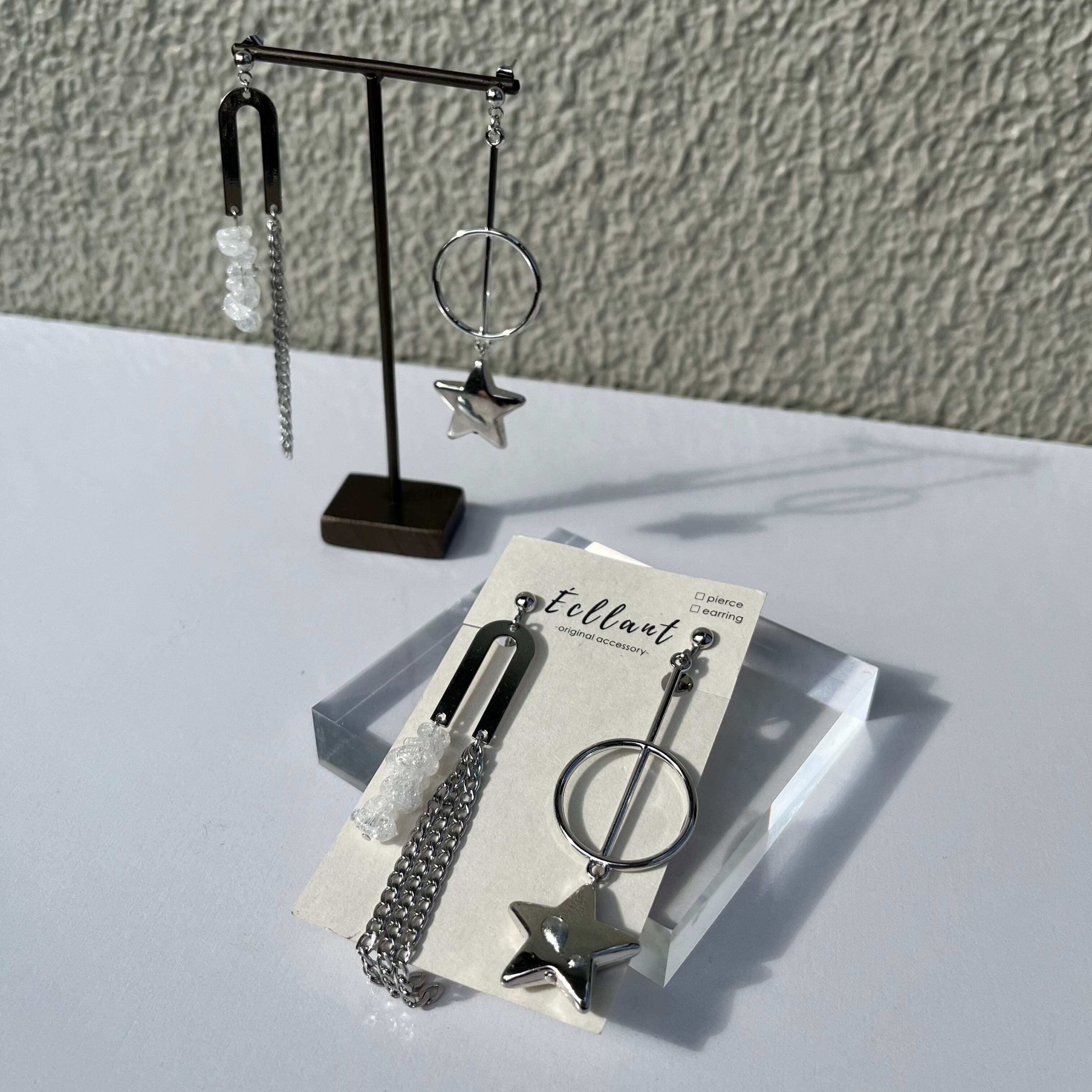キラキラ星のアシンメトリーピアス / イヤリング / サージカルステンレス