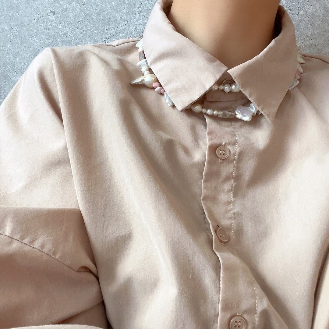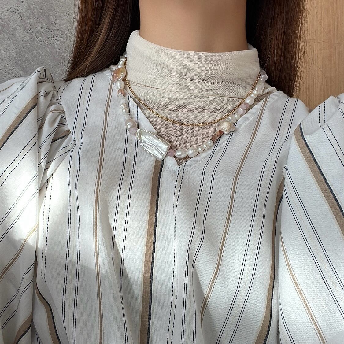 力強く華美な雰囲気の中にフェミニンさも兼ね備えたパールネックレス。