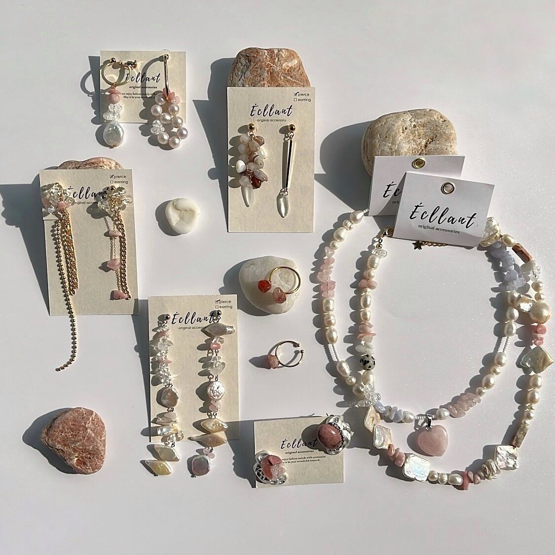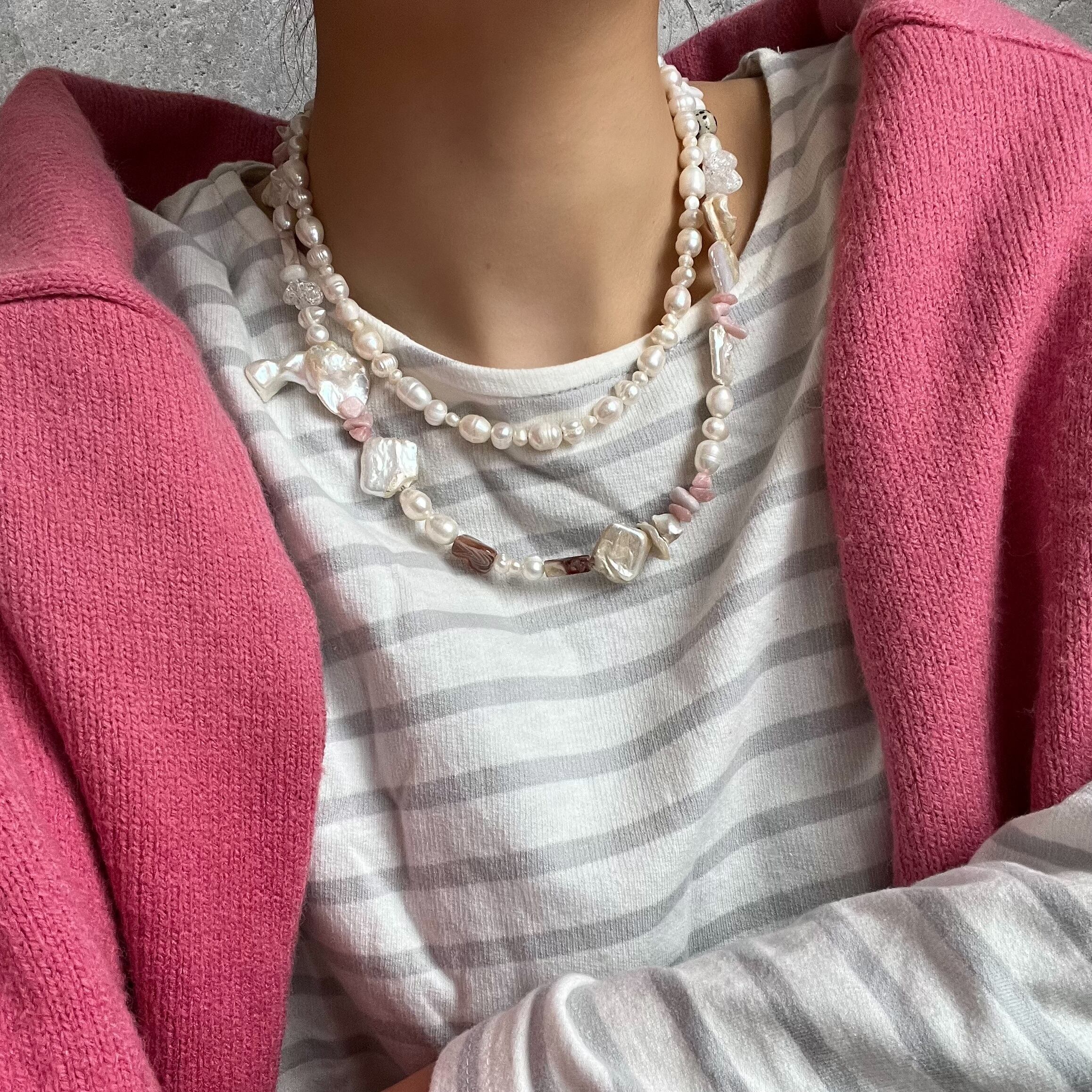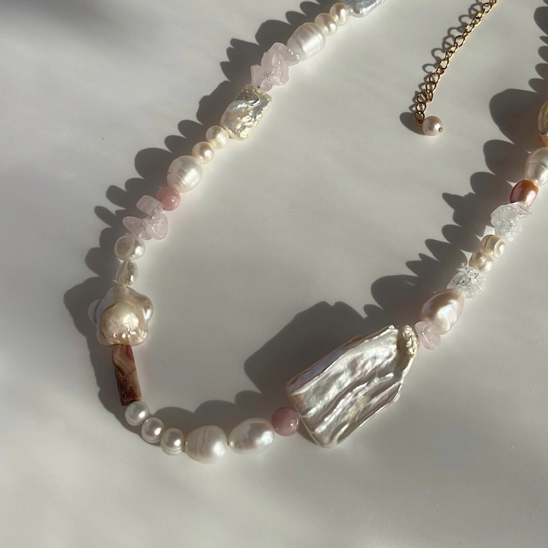 淡水パール・バロックパール・クラッククォーツ・ローズクォーツ・ブルームーンストーン・ネイチャークレイジーアゲート