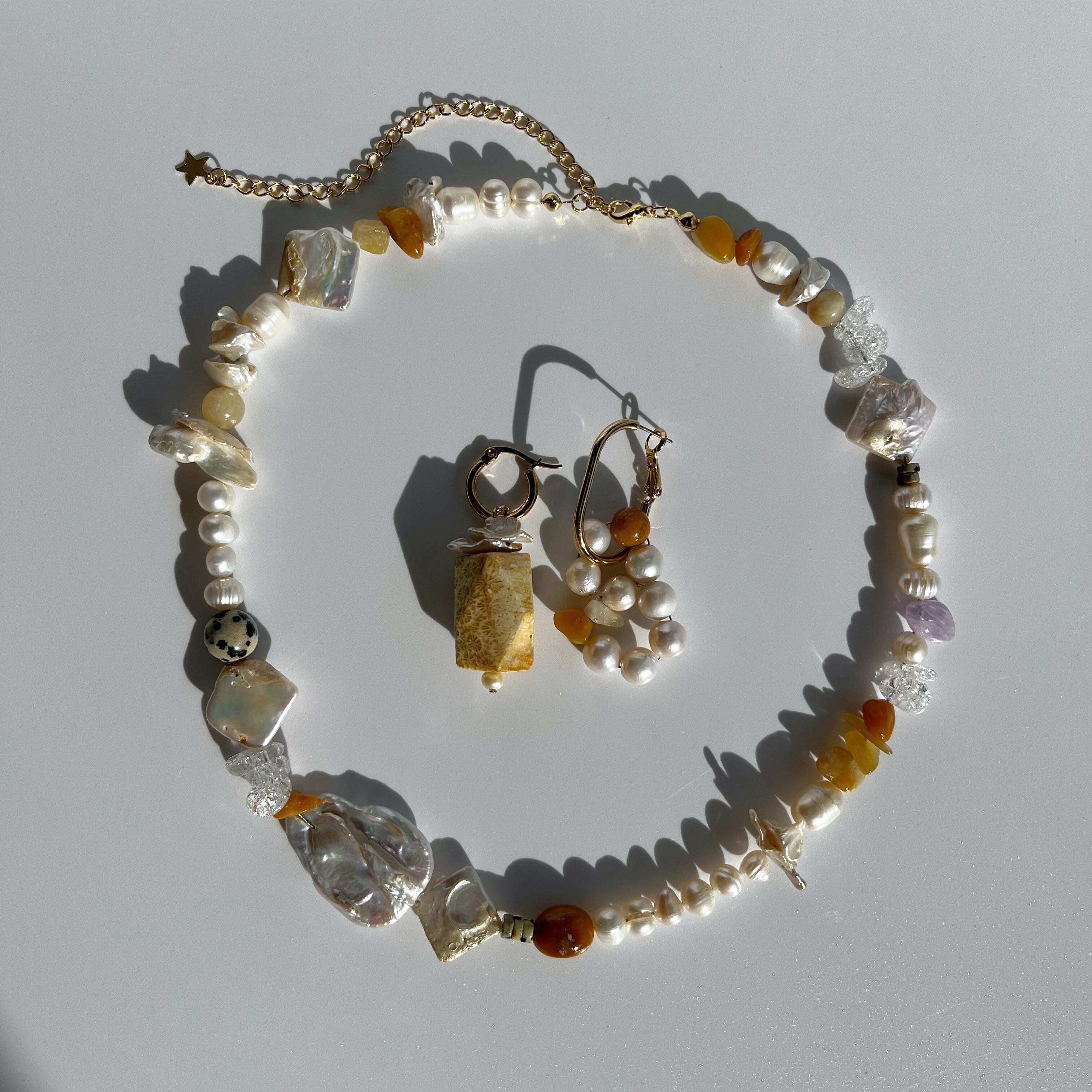 使用石 : 菊花石・イエロージェイド・淡水パール・バロックパール