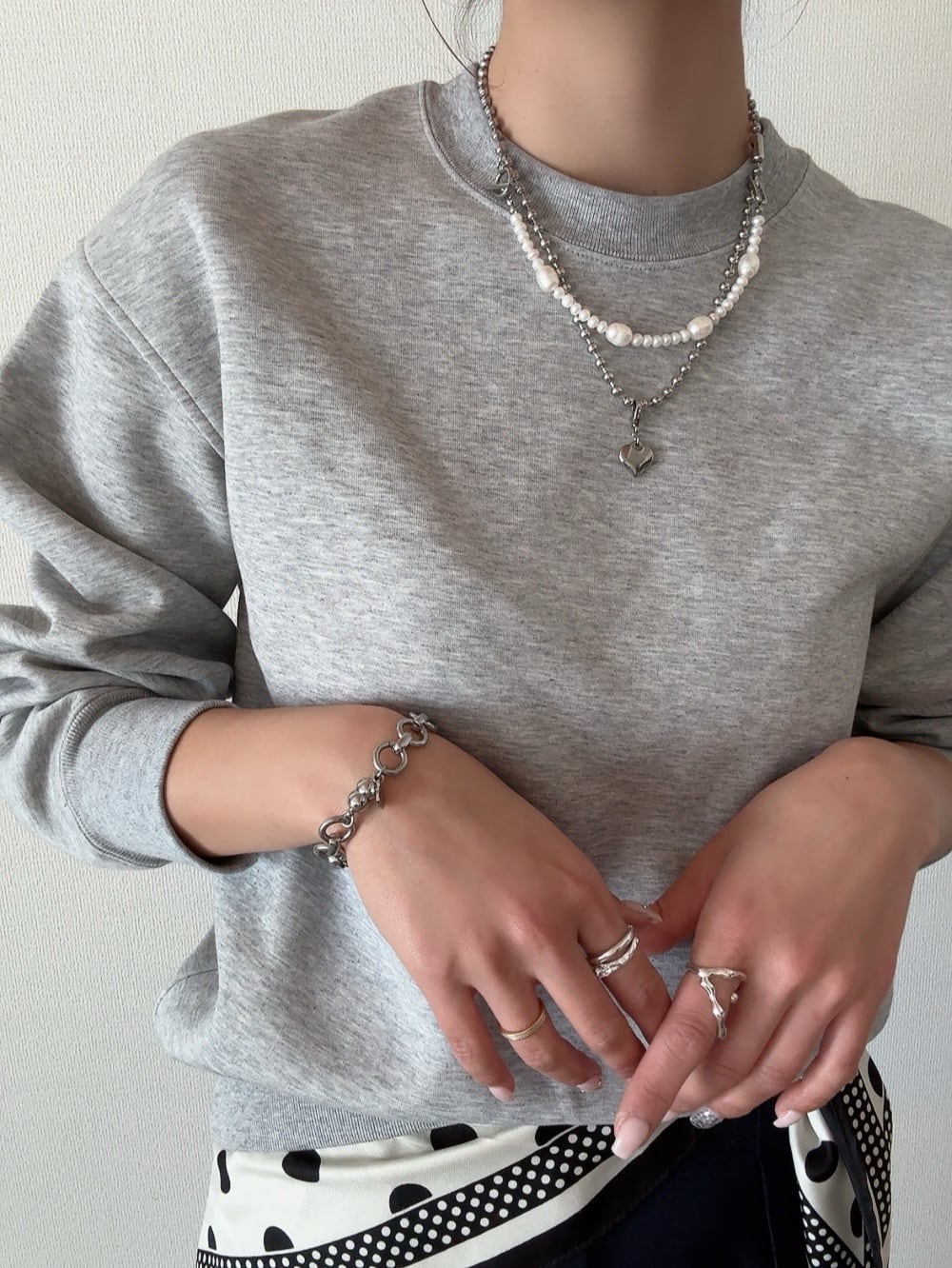 パールとボールチェーンを組み合わせた