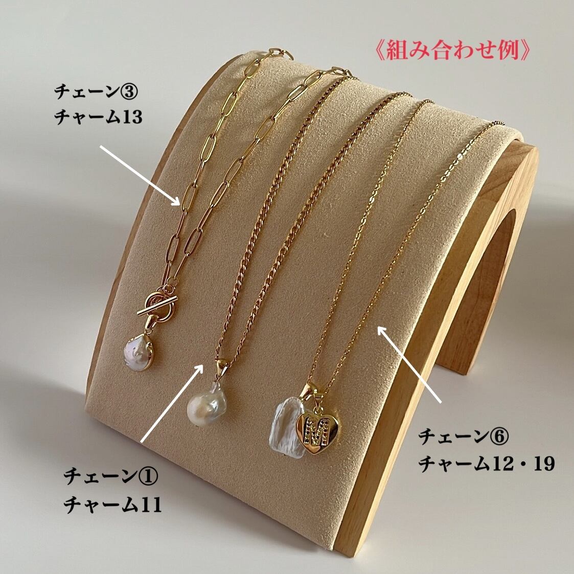 チャームの取り外しが不可のチェーン(②・③)をご購入の場合はどのチェーンにどのチャームを組み合わせたいかも備考欄にご記入下さいませ。