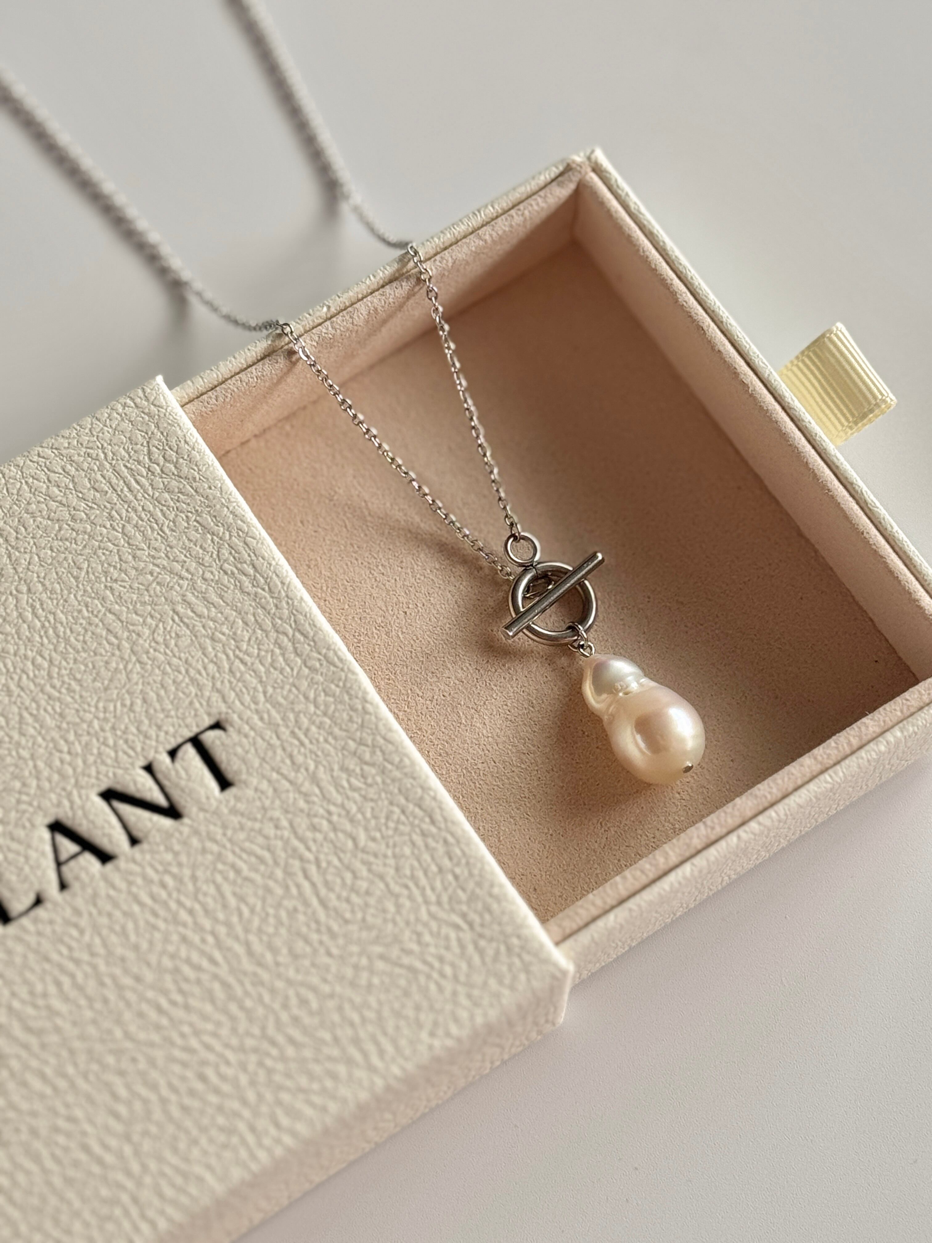 少し無骨なバロックパールに、凛としたシルバーカラーを合わせることで