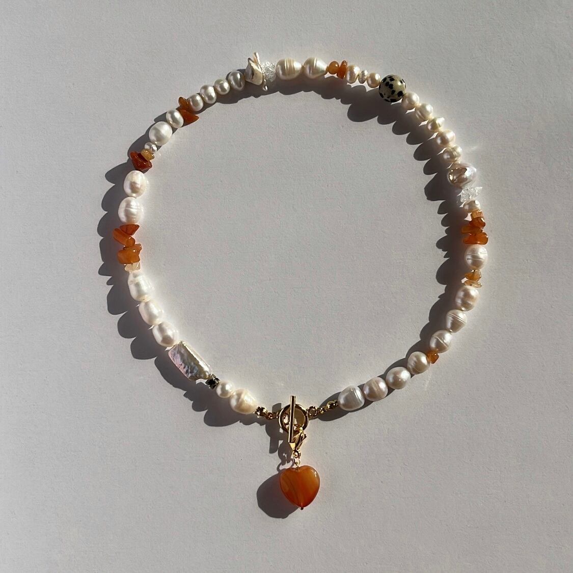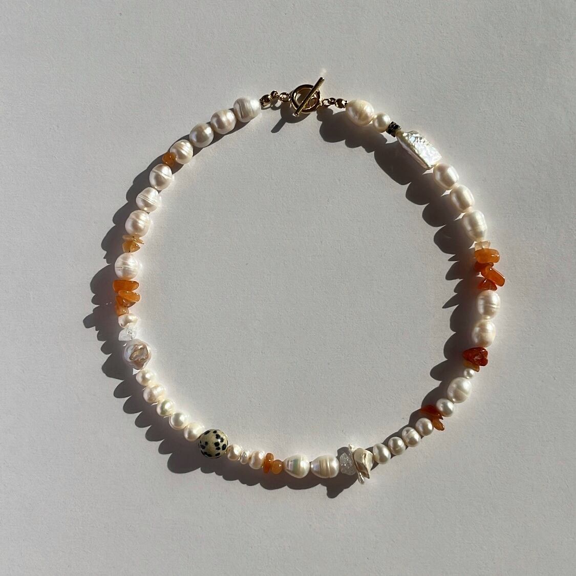 レッドアベンチュリンやダルメシアンジャスパー、様々な形の淡水パールを組み合わせた2wayネックレス♡