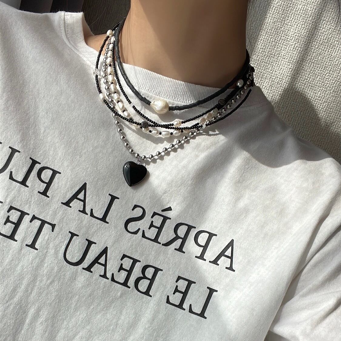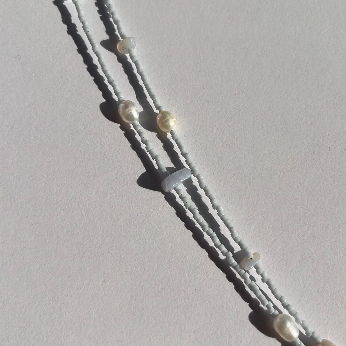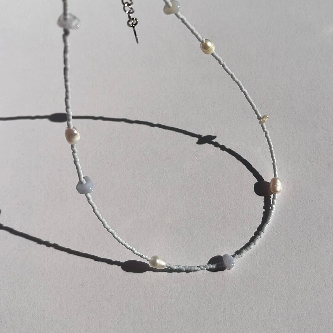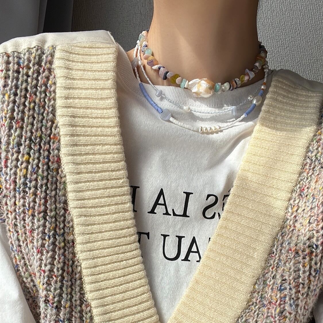 天然石とパールを散りばめた華奢なビーズネックレス。