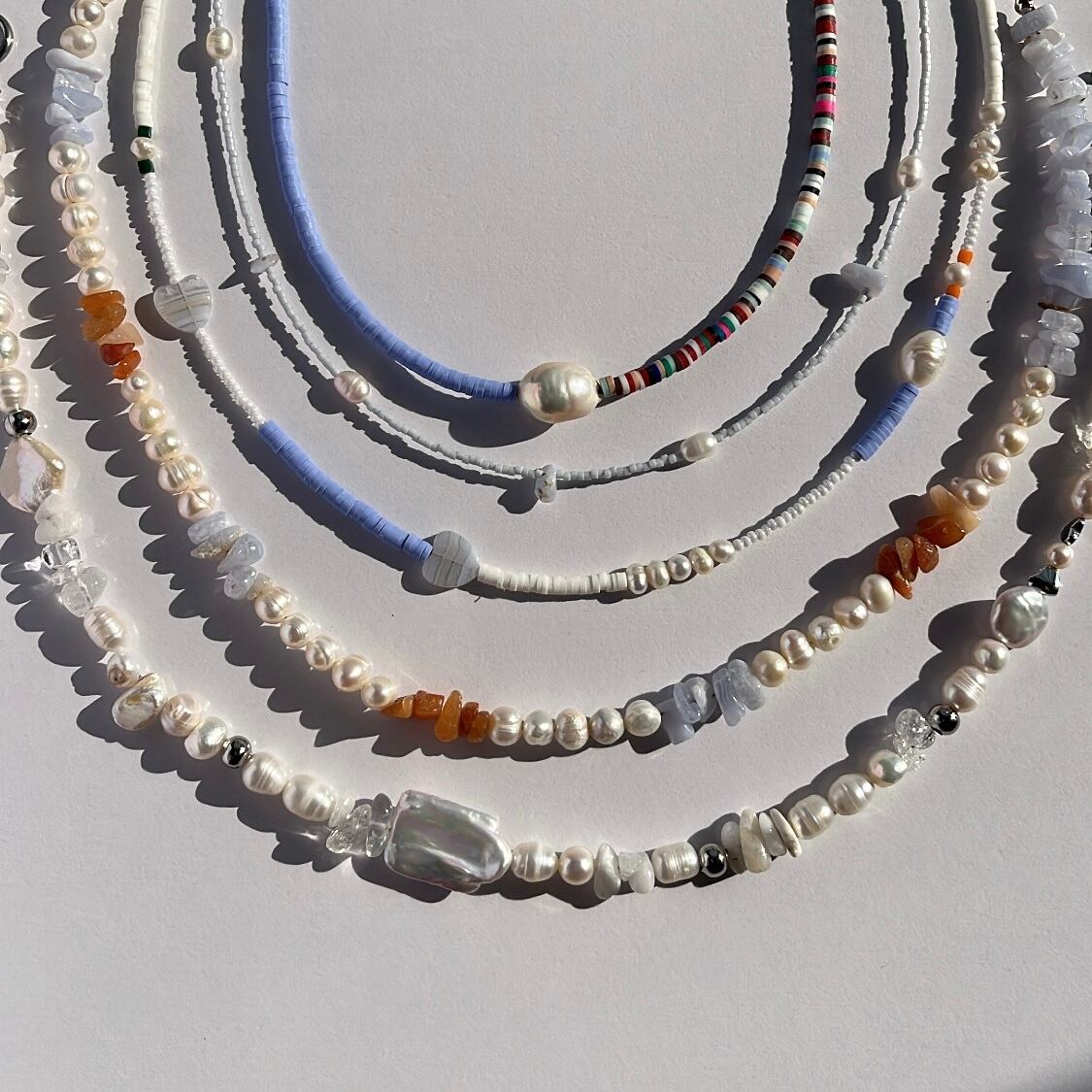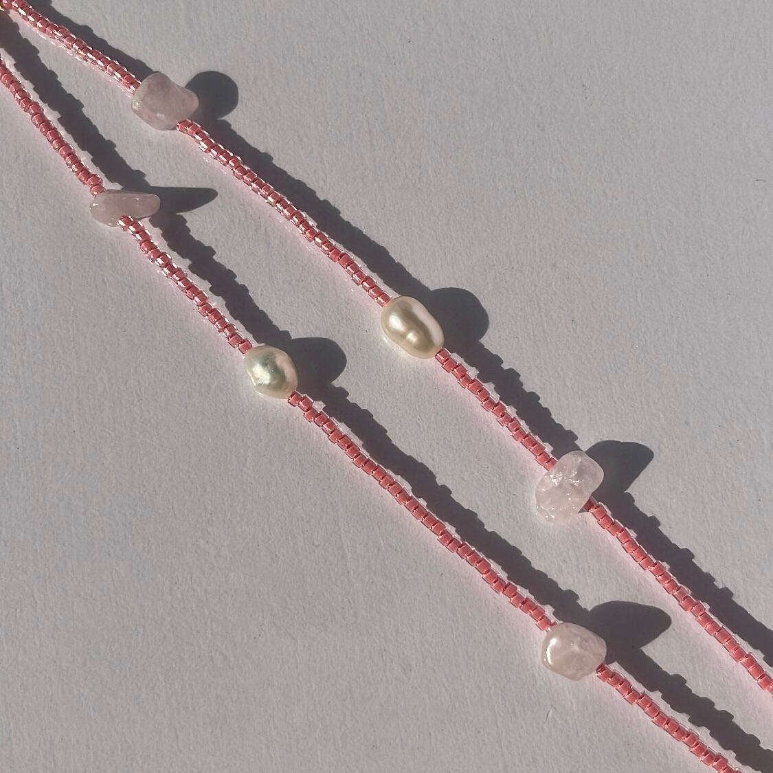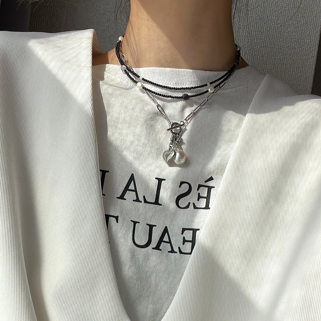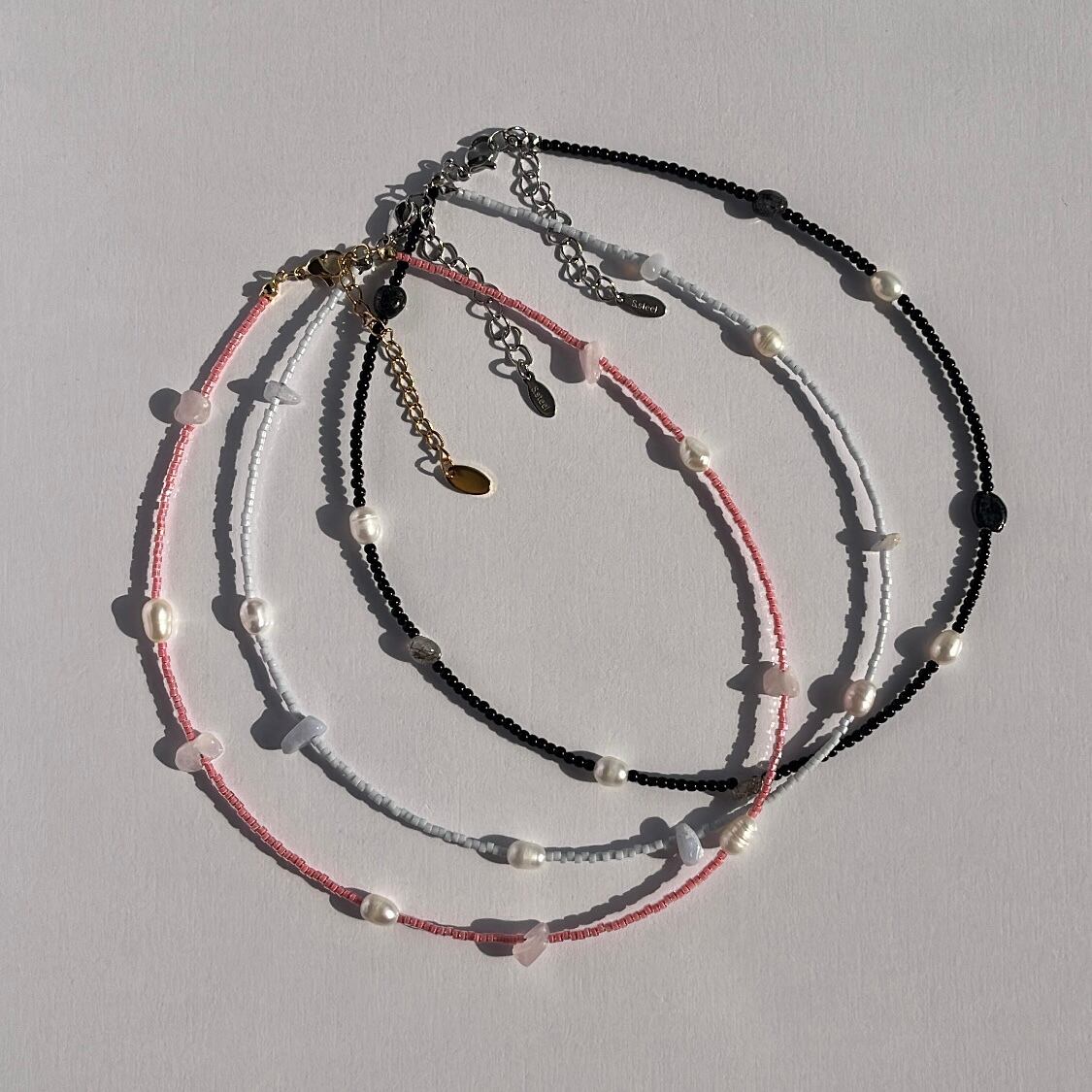 天然石とパールを散りばめた華奢なビーズネックレス。