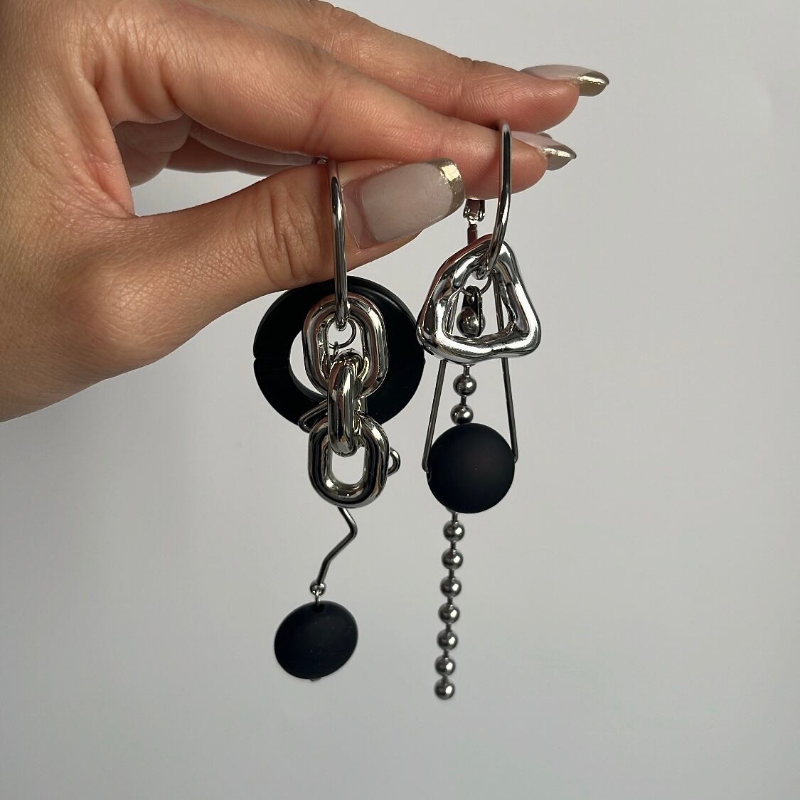 ブラック ×シルバー アシンメトリーピアス / イヤリング