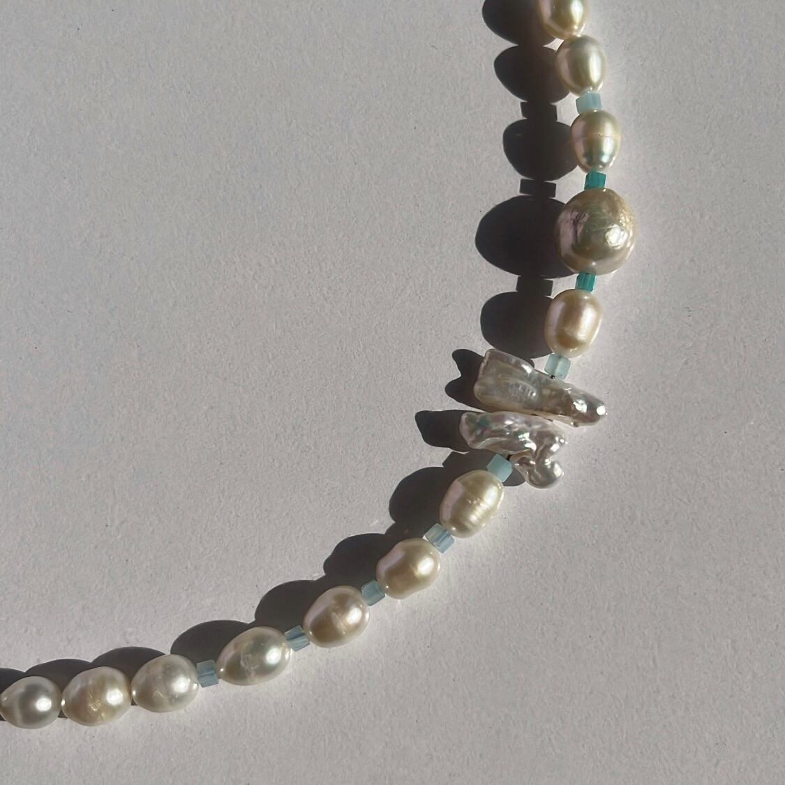 【SKYBLUE】ポリマークレイ 淡水パールネックレス[GSN090-SB]