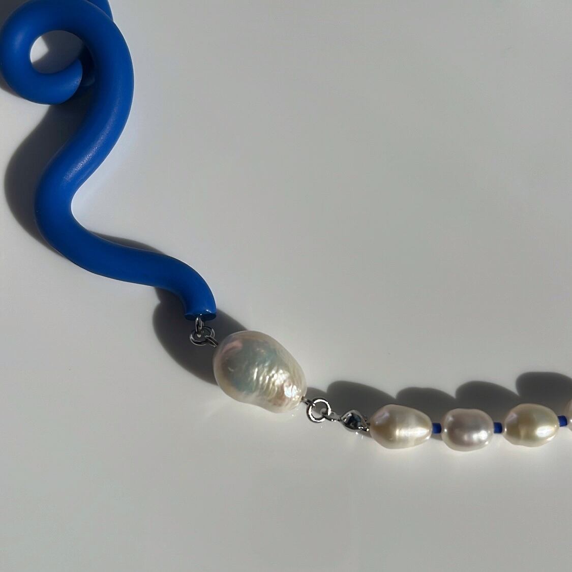 【BLUE】ポリマークレイ 淡水パールネックレス[GSN090-B]