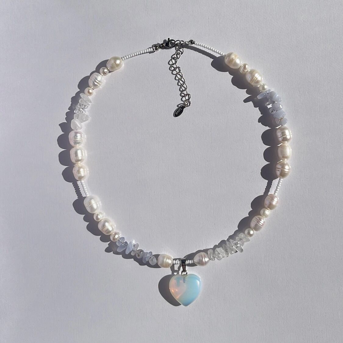 淡色カラーの天然石を使用した淡水パールネックレス♡