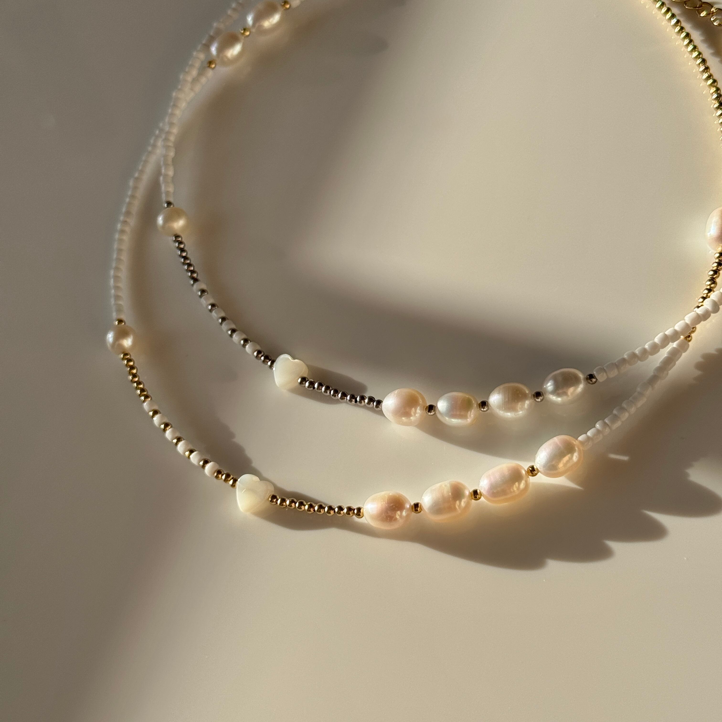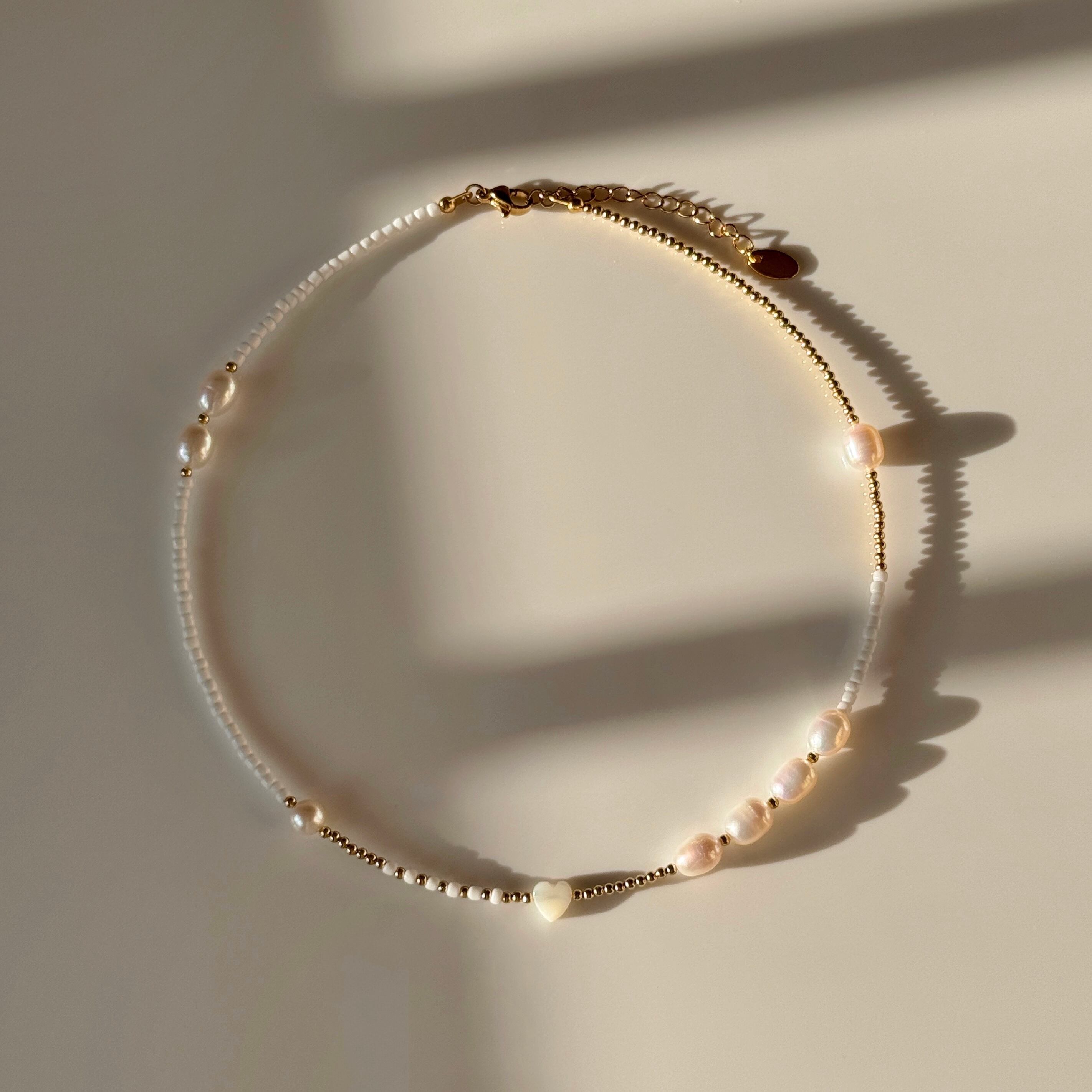 中央には小さなシェルのハートビーズが