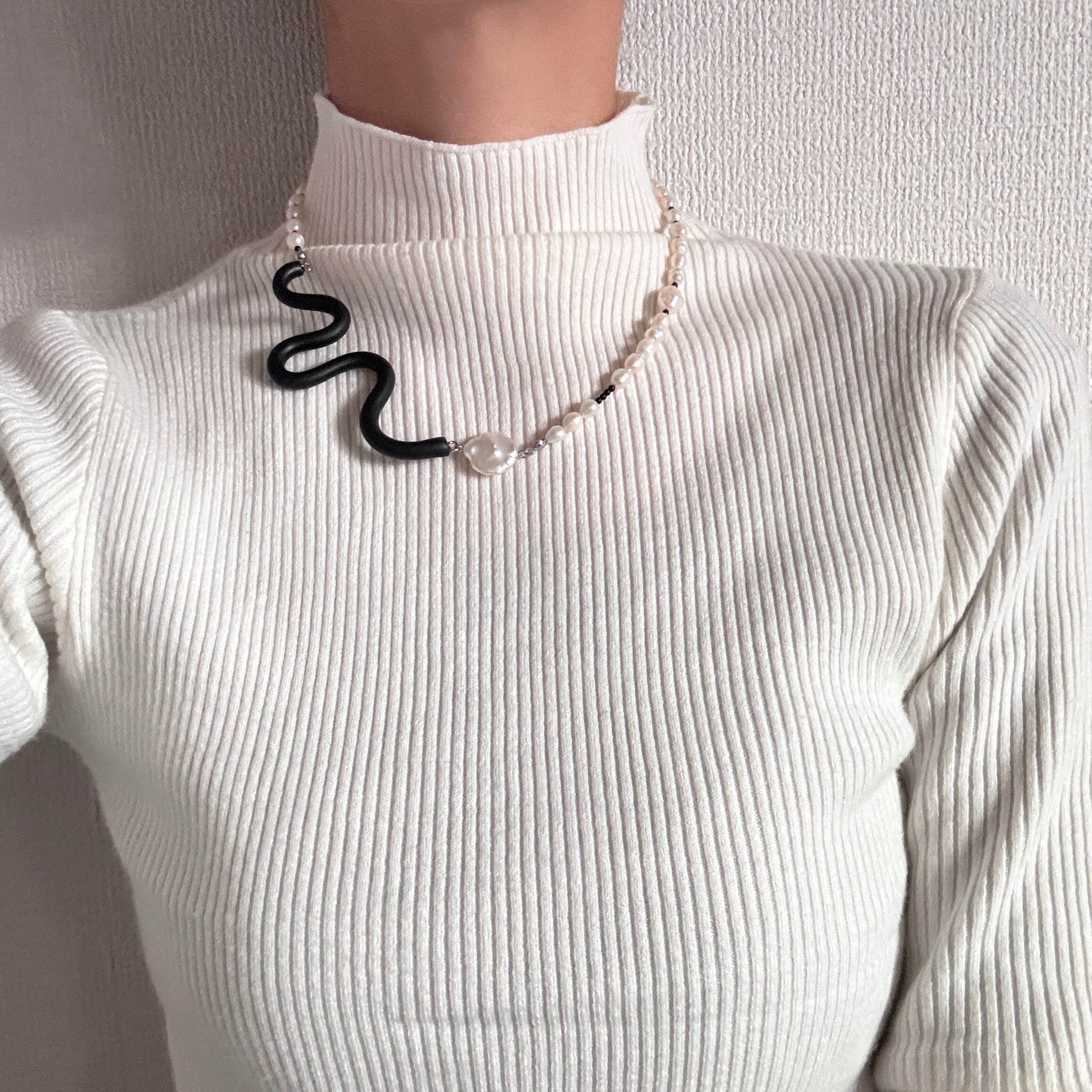 [BLACK] ポリマークレイ 淡水パールネックレス[GSN090-BK]